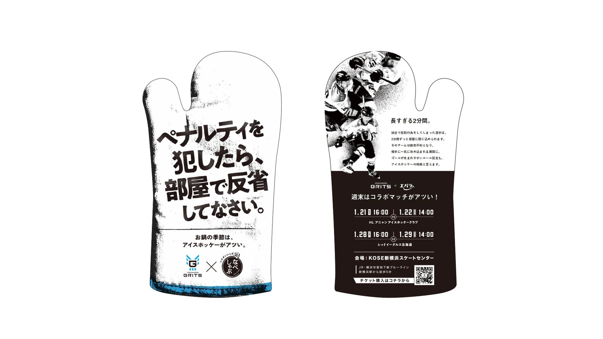 エバラ食品「なべしゃぶ」1個と、アイスホッケーのアツさを表現した「”鍋つかみ型”チラシ」(5種のうち1種類)を同封したものを、通行人にプレゼント配布する。