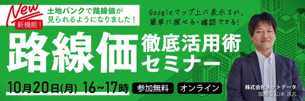 土地バンクでは「路線価表示機能」の公開に合わせて、この新機能の使い方について、【10月20日(月)16時~17時】に、オンラインにて無料セミナーを実施させていただきます。