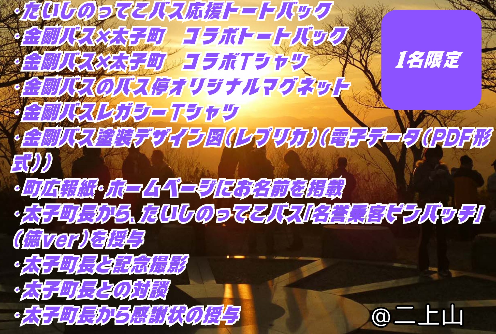 【1名限定】「たいしのってこバス」名誉乗客「徳」コース(1,000,000円)