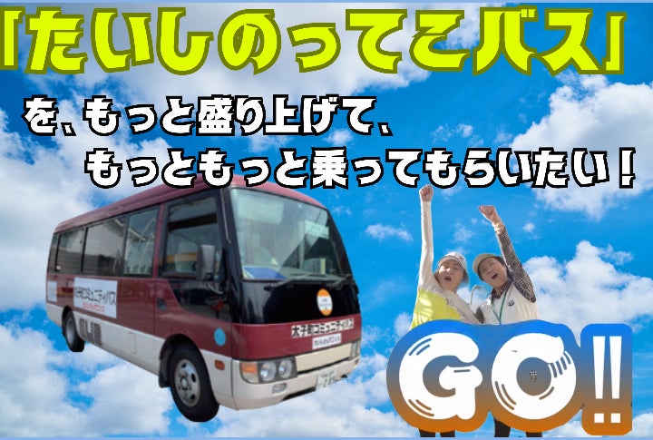「たいしのってこバス」の運行を維持していくためにも、もっとたくさんの人に「たいしのってこバス」を利用していただき、また、全国の皆さまに太子町の「すごいトコロ」を知ってもらい、「たいしのってこバス」に乗って、太子町を巡りたくなるような楽しいプロジェクトにしたいと存じます!一緒に「たいしのってこバス」を盛り上げましょう!皆さまの温かいご支援をよろしくお願いします!