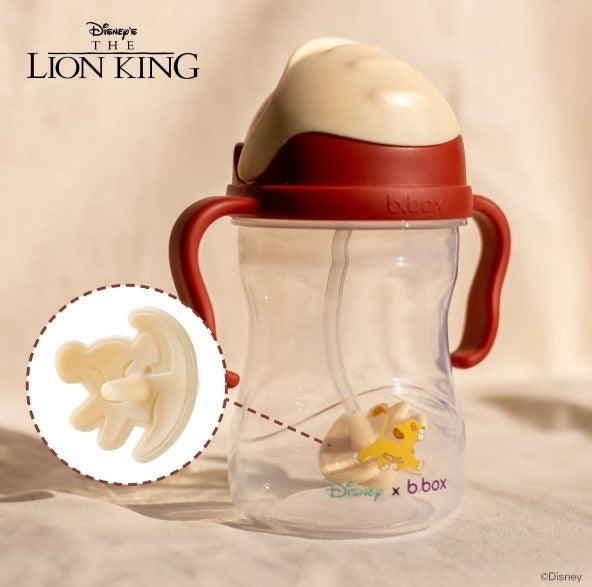 今回発売となるのは、赤ちゃんの離乳食がはじまる頃から、少しずつ自分で飲むことやコップを持つためのトレーニングを始めるのに使いたいストローマグのDisneyアイテムに「ライオンキングデザイン」が仲間入り。