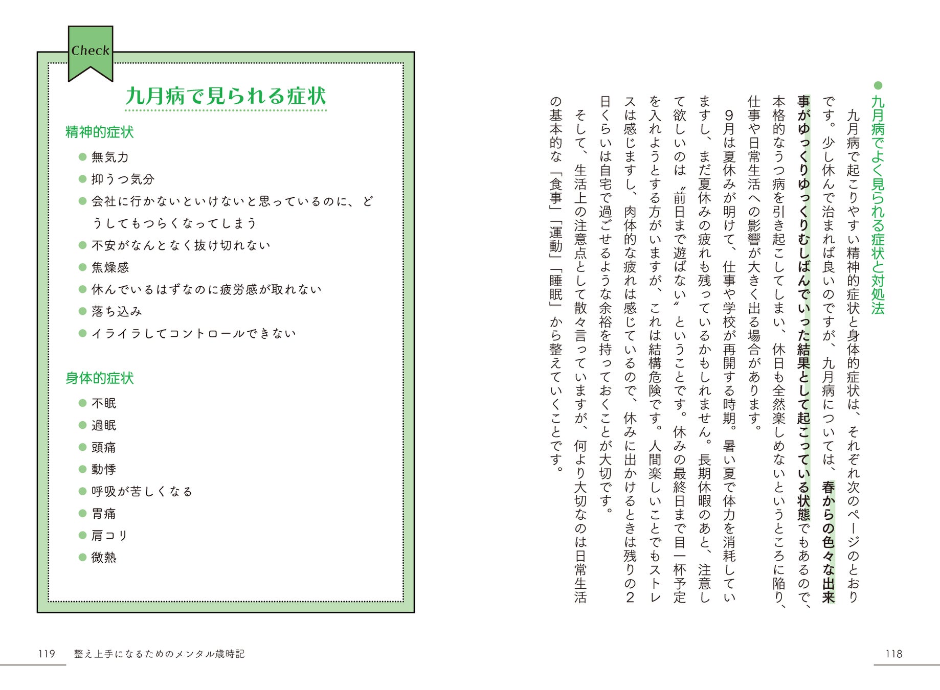 この本は、季節ごとに陥りやすいメンタルの不調を解説し、“なんとなくの不調=未病”のうちに、自分で対策していくことを目的とした内容になっています。