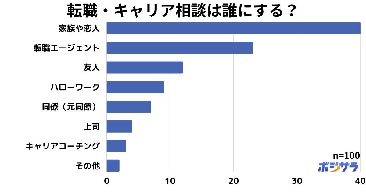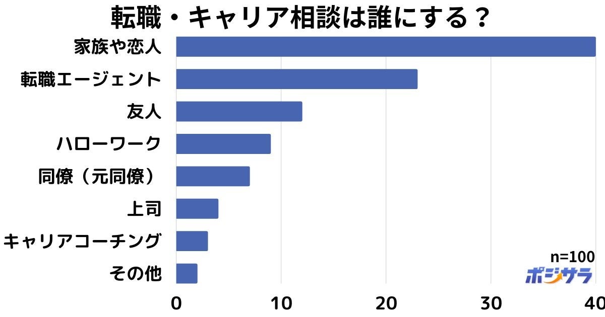 「転職・キャリア相談は誰にする?」の1位は40人が回答した「家族や恋人」となりました。