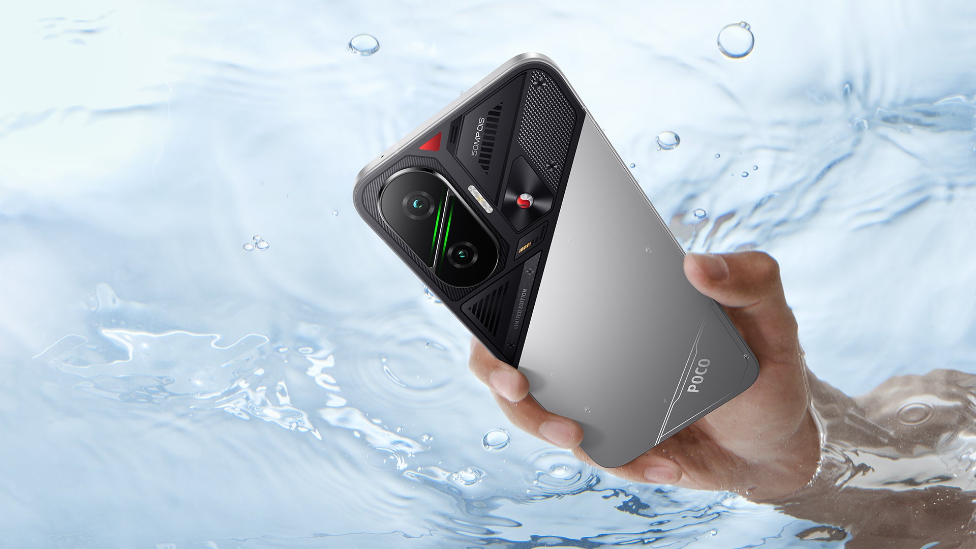 POCO Fシリーズで最も大きい6.83インチの高精細1.5K(2772×1280)有機ELディスプレイを搭載。ピーク輝度は3200nitsです。5000万画素の広角メインカメラにはソニー製のIMX882センサーを搭載し、光学式手ブレ補正にも対応します。メタルフレームとガラスバックは、個性的で、高級感あふれるデザインで、IP68の防塵/防水性能を備えます。