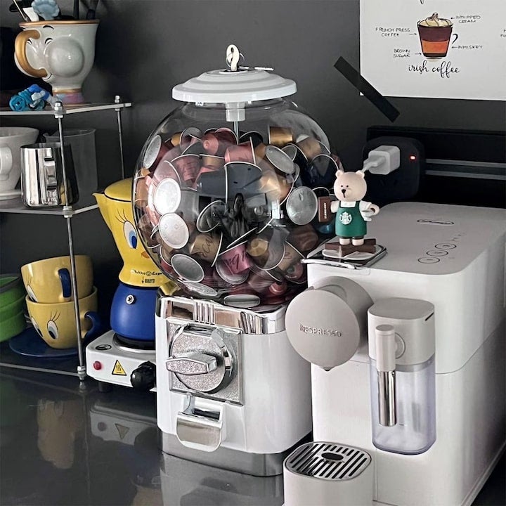 コーヒーカプセルをカプセルトイ感覚で収納できる、遊び心あふれるアイテム。最大260個を収納できる頼もしさで、キッチンもすっきり整います。毎朝のコーヒータイムが、よりワクワクするひとときに。ピンクやグリーンを選べば空間のアクセントとしても活躍します。