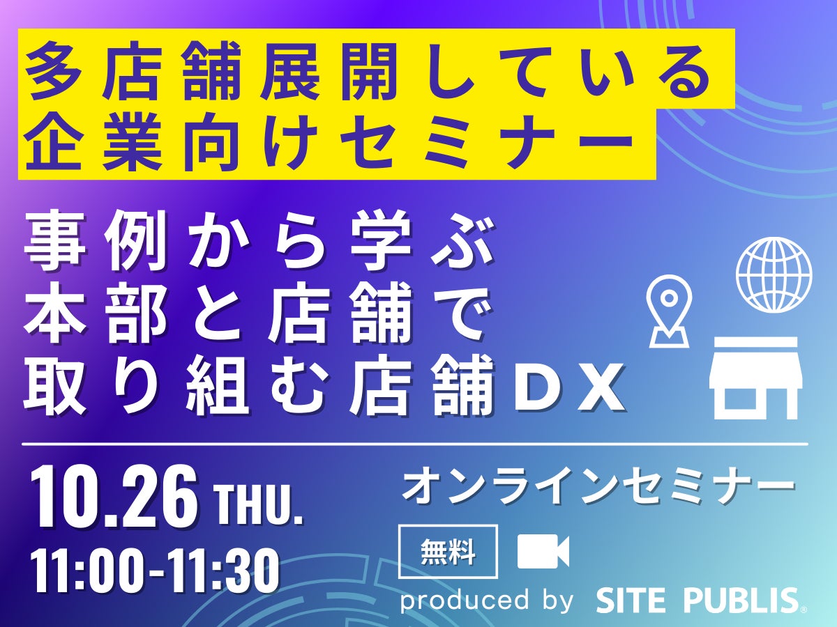 株式会社サイト・パブリス(本社:東京都千代田区 代表取締役社長:二通 宏久)は10月26日(木)に多店舗展開している企業様に向けてセミナーを開催します。