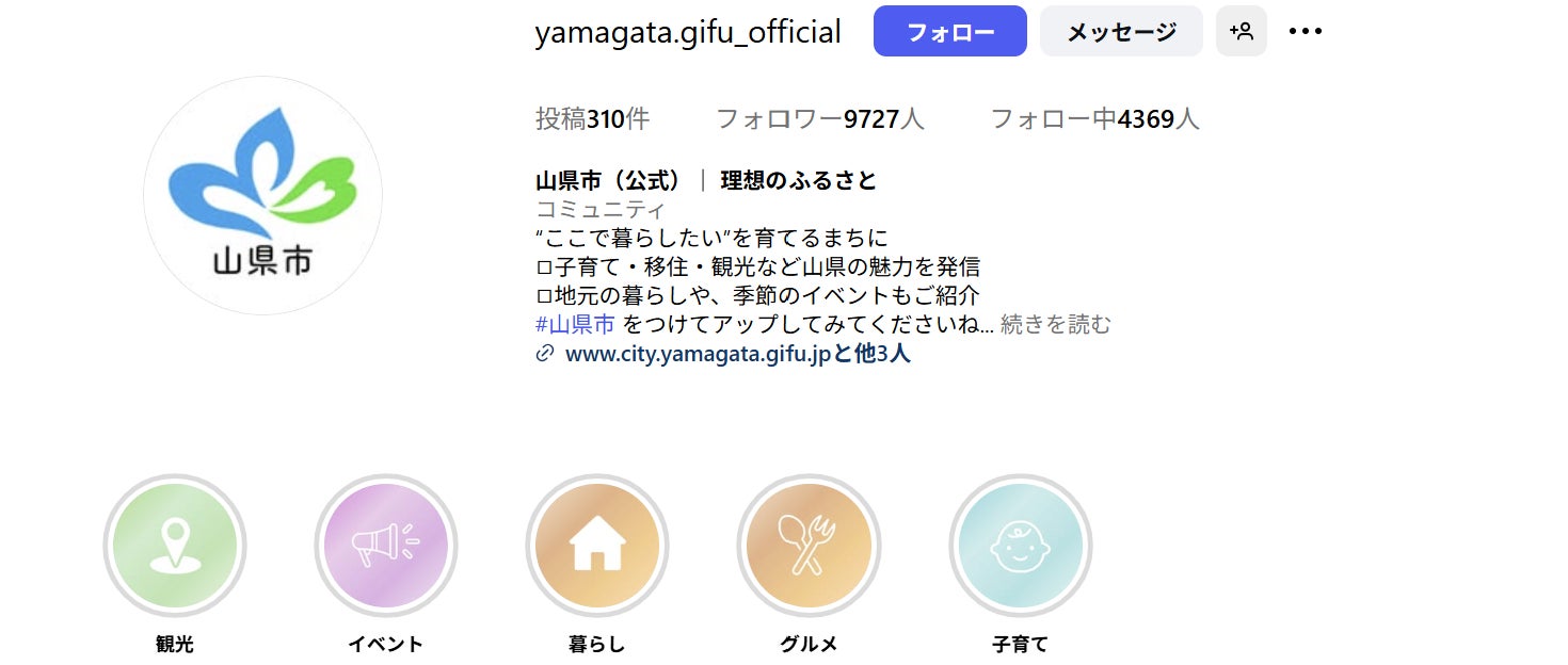 コンセプト「みんなの理想のふるさと 山県」を核に、Instagramを活用した発信で山県市の魅力を市民・市外民へ発信するInstagram運用の基盤を構築。