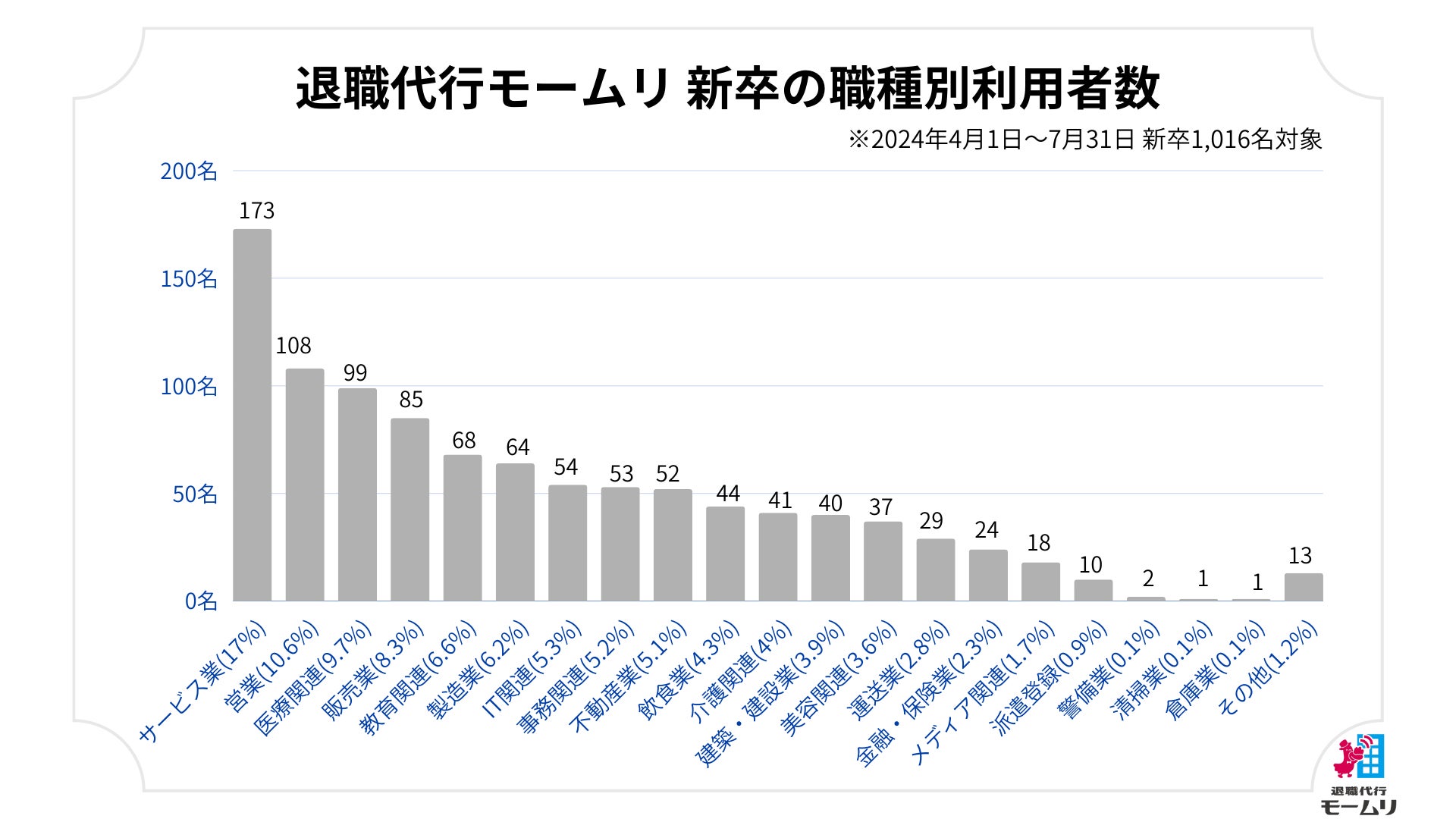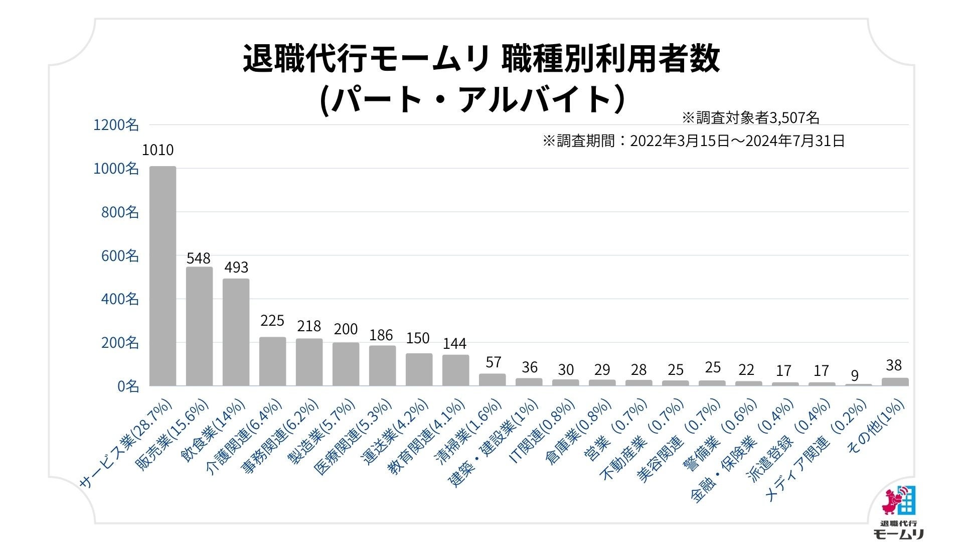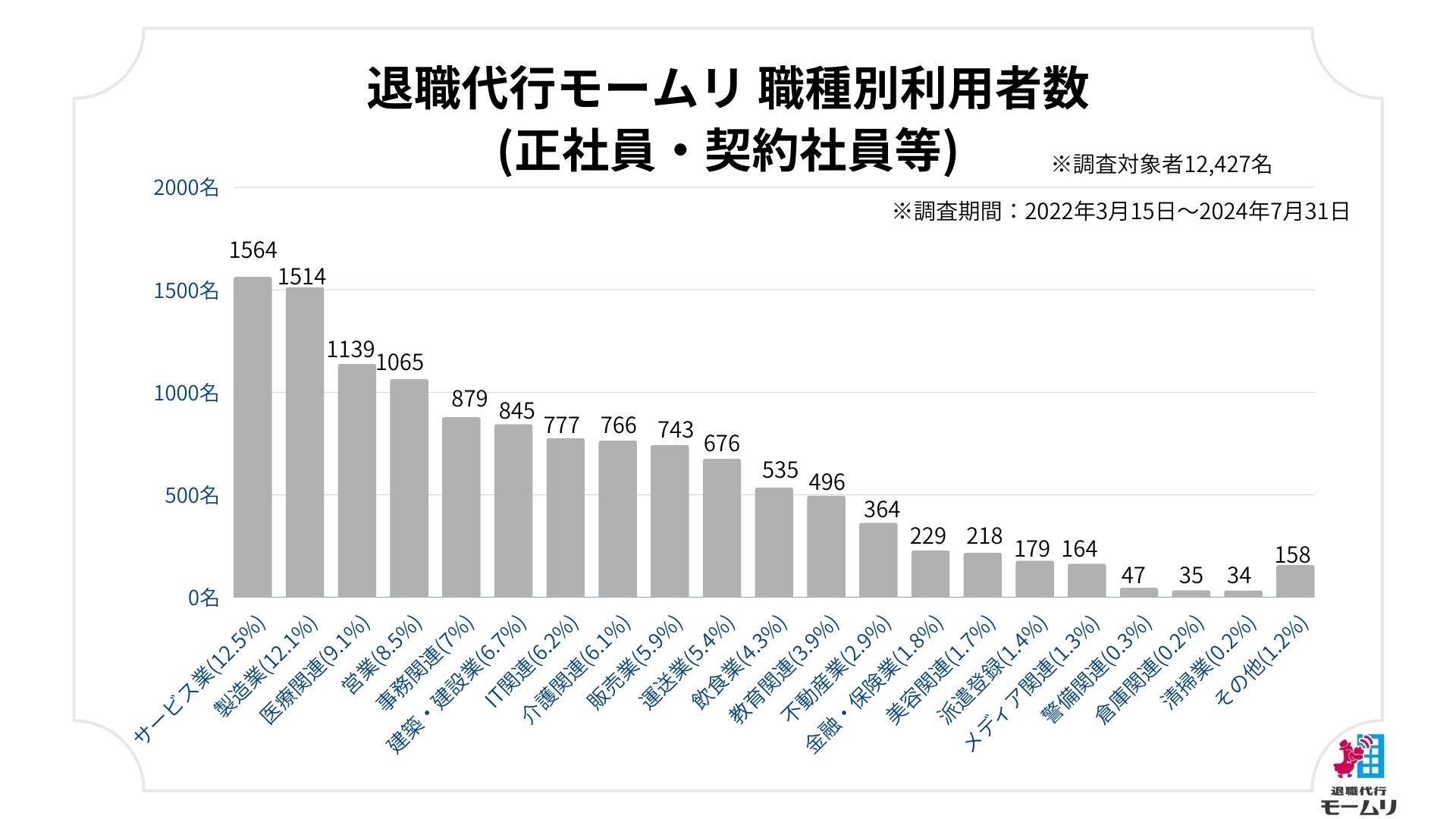 退職代行モームリを管理している株式会社アルバトロス(本社:東京都港区、代表取締役:谷本慎二)が、2024年8月1日(木)に退職代行の利用状況の調査を行いましたので、その結果を公開致します。