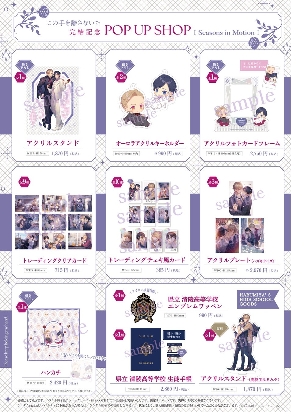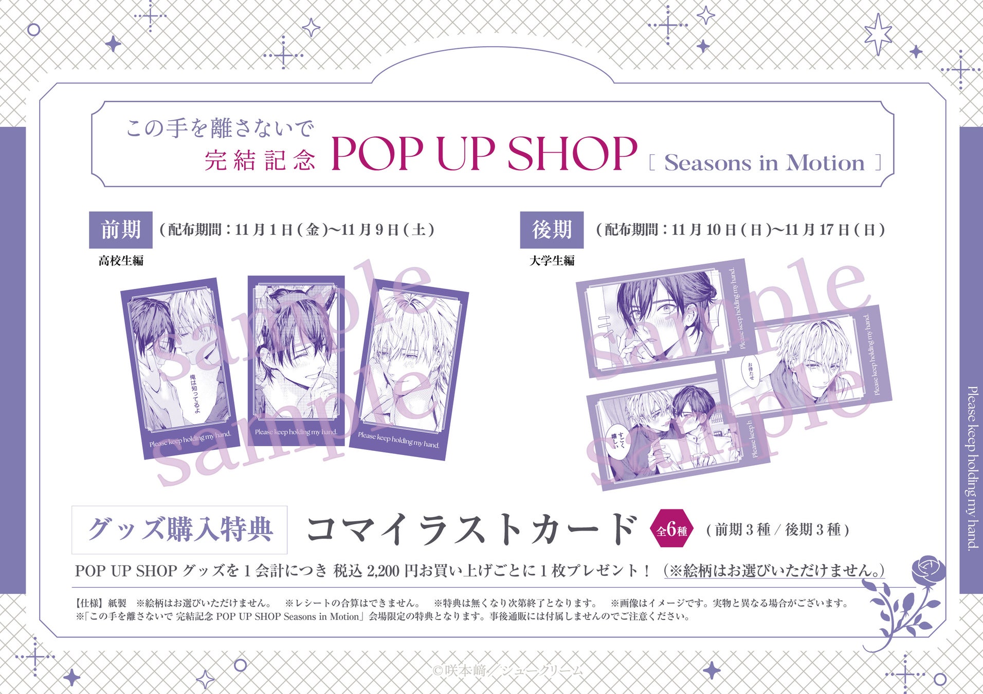 催事タイトル:『この手を離さないで 完結記念 POP UP SHOP ~Seasons in Motion~』