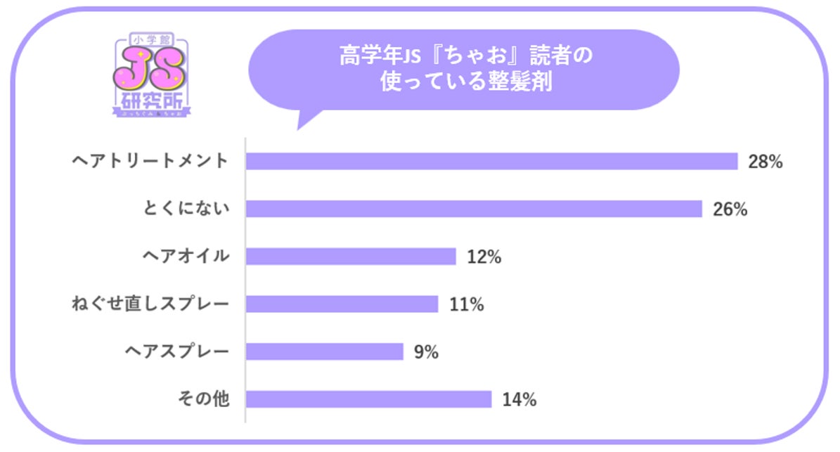 約3割のJSはヘアトリートメントを使用するなど、美髪への意識の高さも伺える結果に。