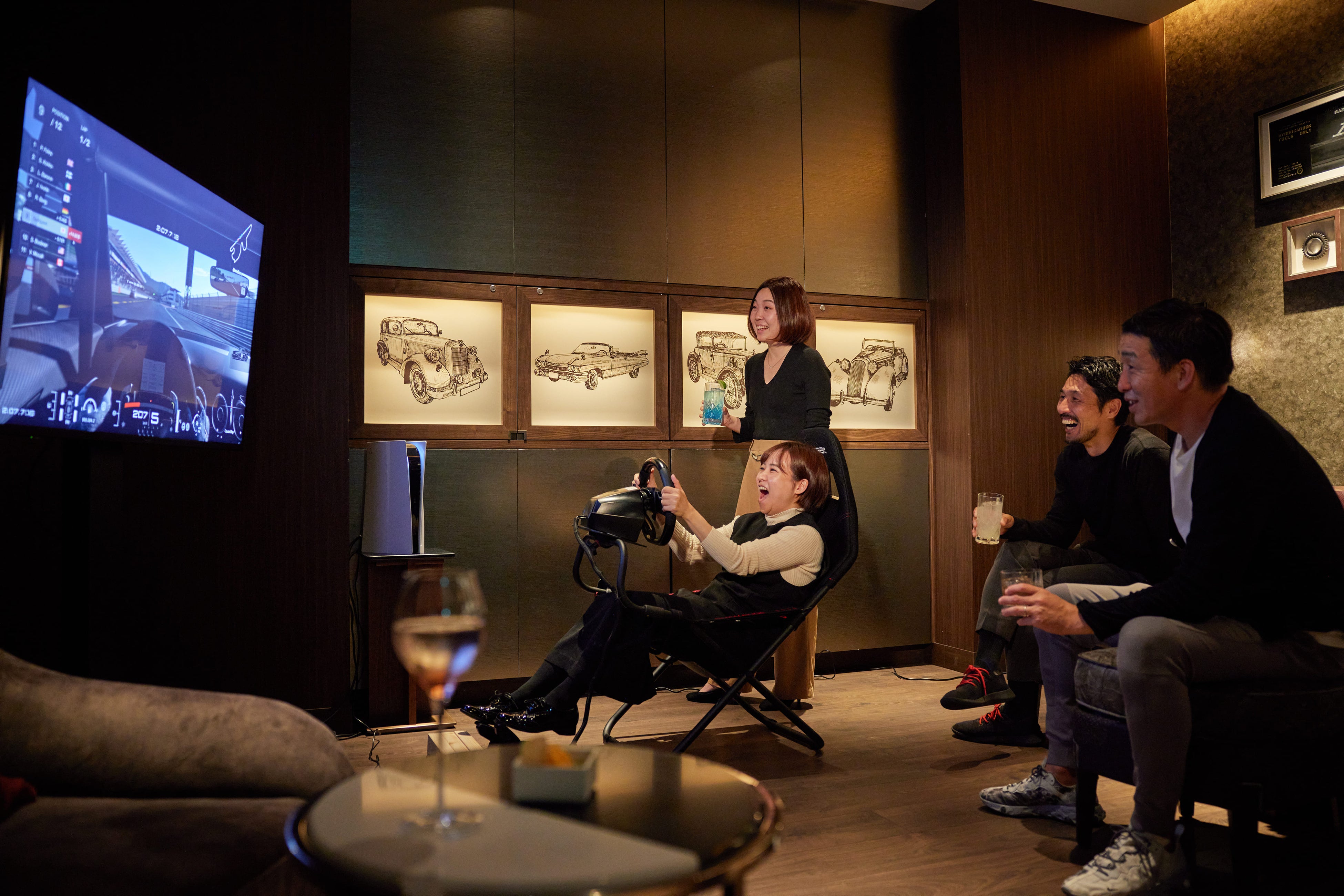一方で、BAR 4563の個室では、ドリンク片手にレーシングゲーム「グランツーリスモ7」を楽しむことができます。リアルなグラフィックスとシミュレーションが、レース観戦前夜のワクワクをさらにかき立てます。