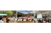 【左】サッカー教室の様子【中央】集合写真【右】講義の様子