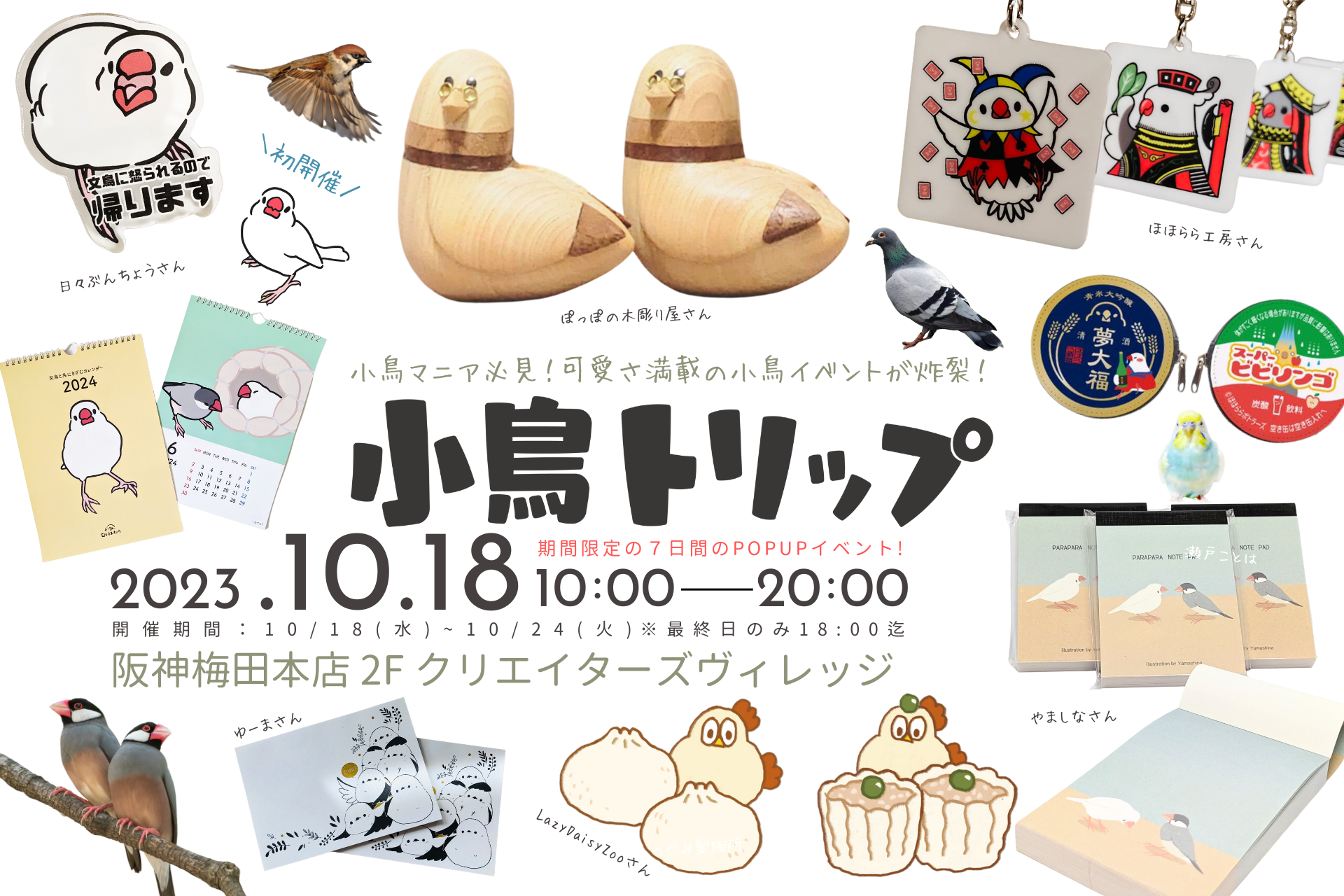 【阪神梅田本店2F】小鳥愛好家注目!POPUPとして「小鳥トリップ」が阪神梅田本店2F クリエイターズヴィレッジにて10月18日(水)より初開催!