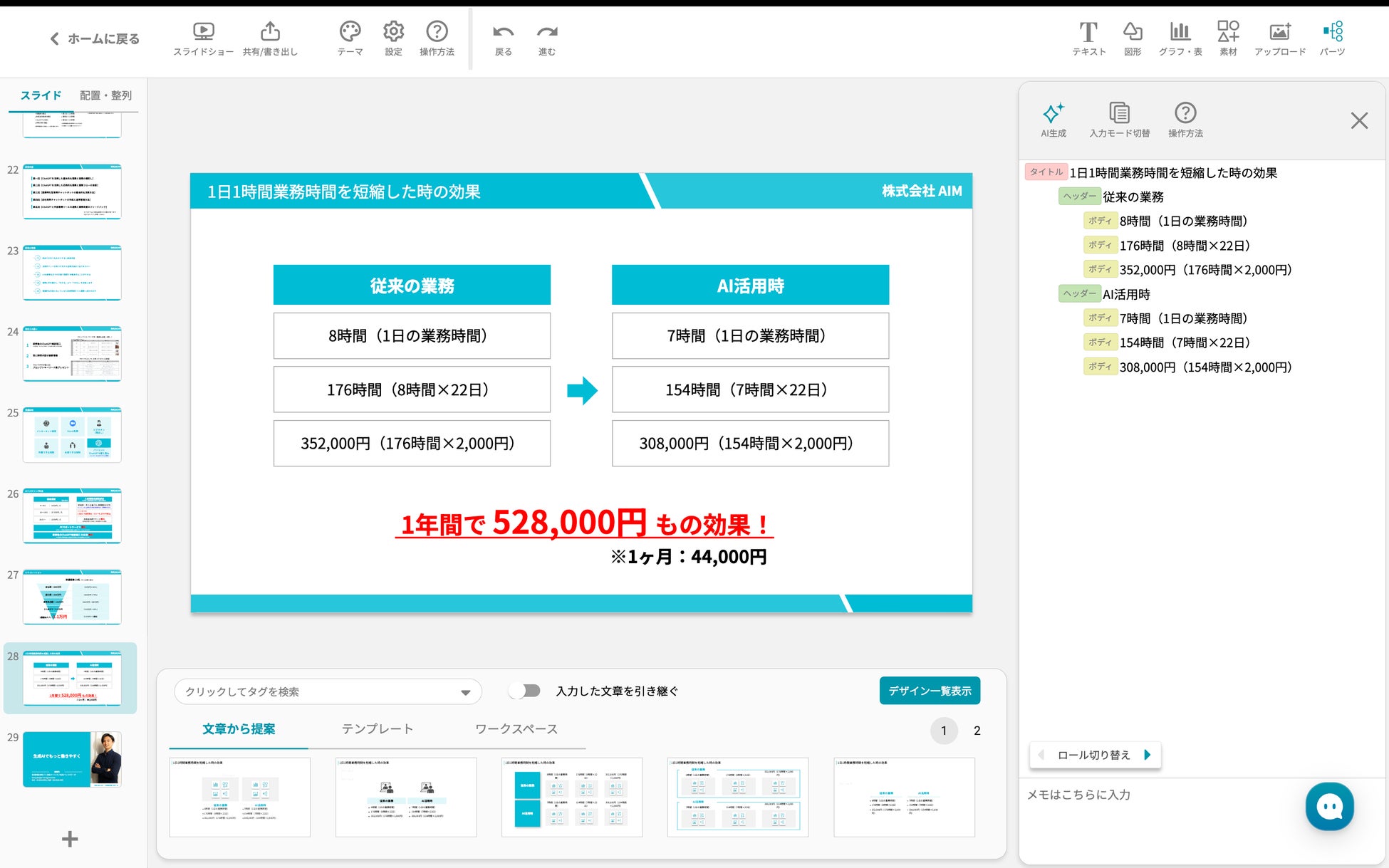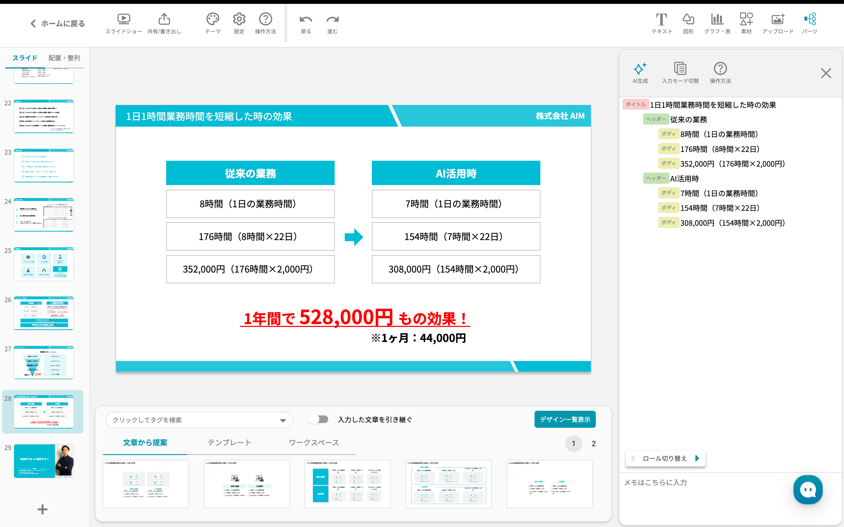 出来上がったスライドを手直しする程度なので、高い時間削減効果があります。