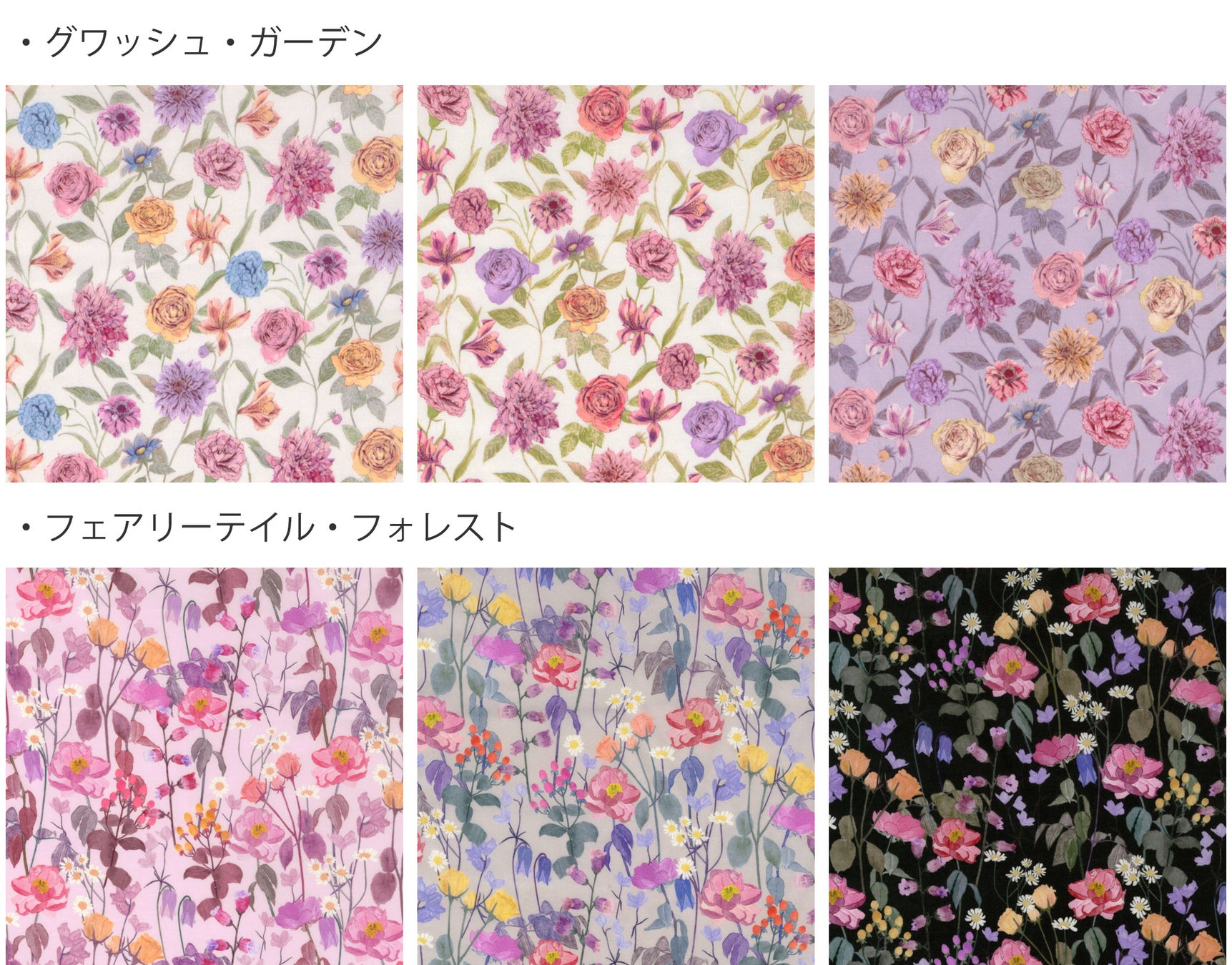 リバティ社から届く最新のデザインを中心に、アーカイブ柄も加え、色合いを優しくしたり、柄のサイズを拡大・縮小するなど日本の女性に合うよう配慮して企画しています。