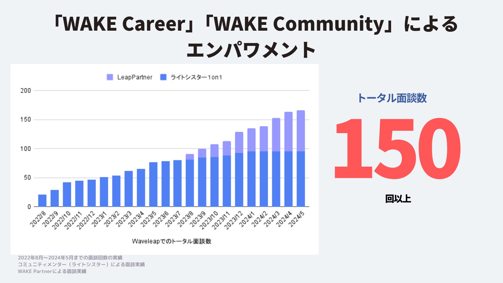 「WAKE Career」でのキャリア面談、「WAKE Community」30人以上の女性エンジニアのメンターとの1on1の数は累計150回以上となりました。面談数が女性のエンパワメントに確実につながっています。