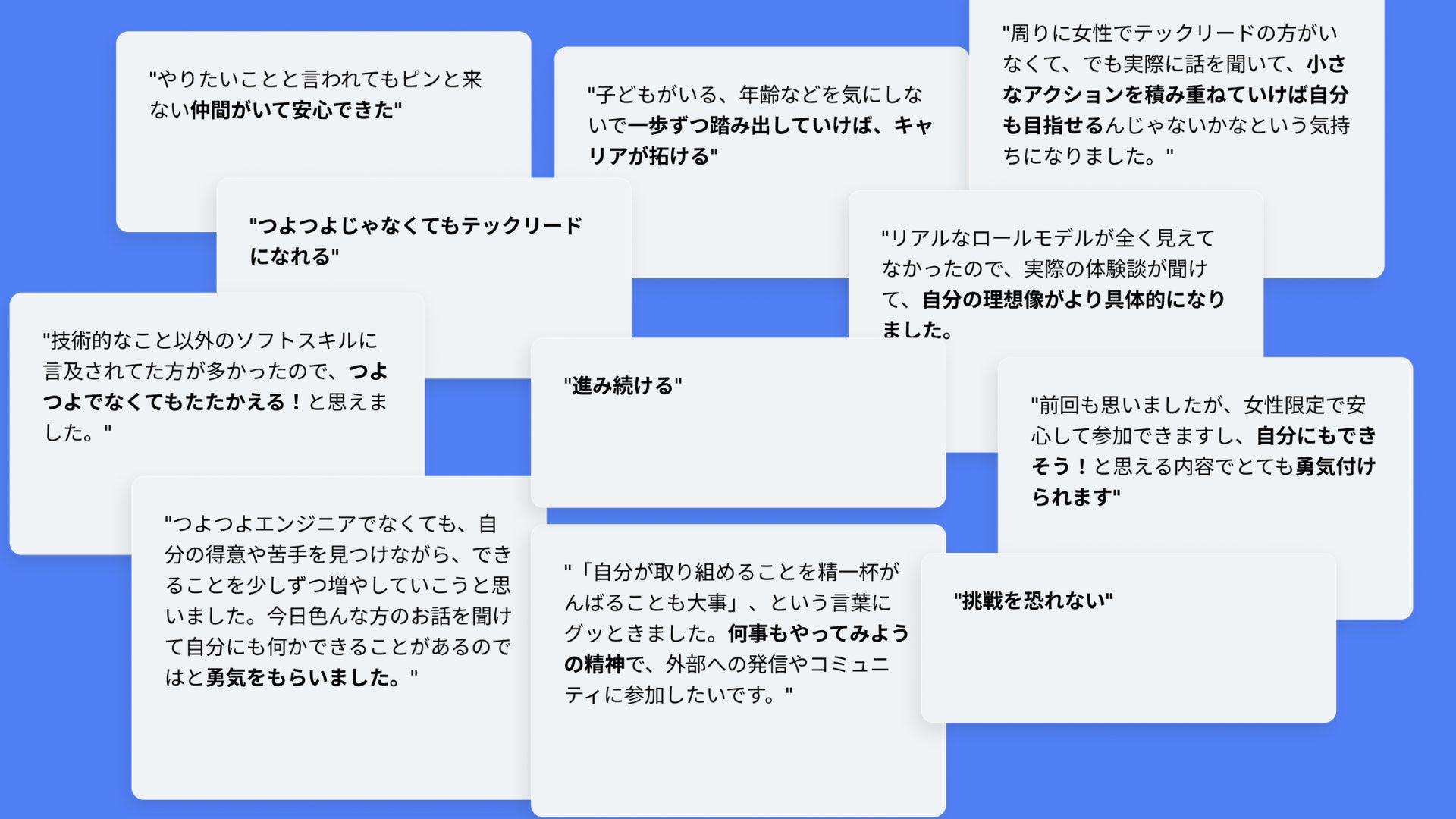 イベントやコミュニティ活動を通してたくさんの女性エンジニアから応援のメッセージや勇気づけられたというようなメッセージをいただいています。
