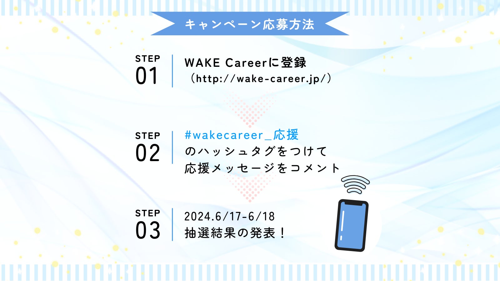 ②X(旧Twitter)にて「#wakecareer_応援」のハッシュタグで応援メッセージを投稿