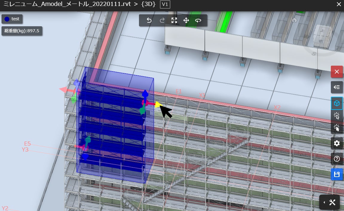 ConnecT.one QSは、Autodesk DocsにアップロードされたBIMモデルを使用して、足場と躯体の集計を行えるNon-BIMユーザー向けのクラウドサービスです。BIMモデル上で必要な足場や工区の範囲を選択するだけで、簡単に部材の数量や容積を拾うことができます。
