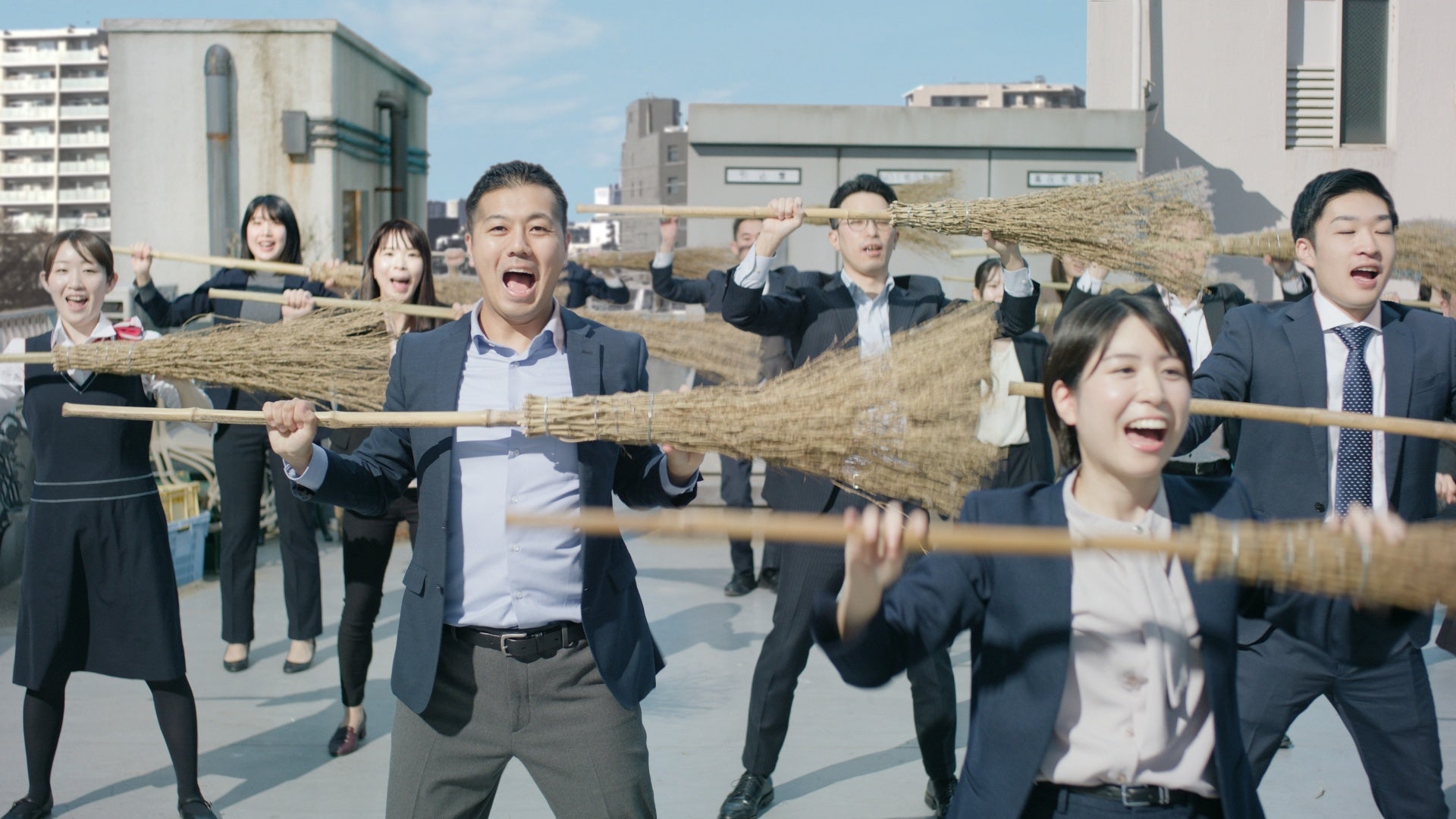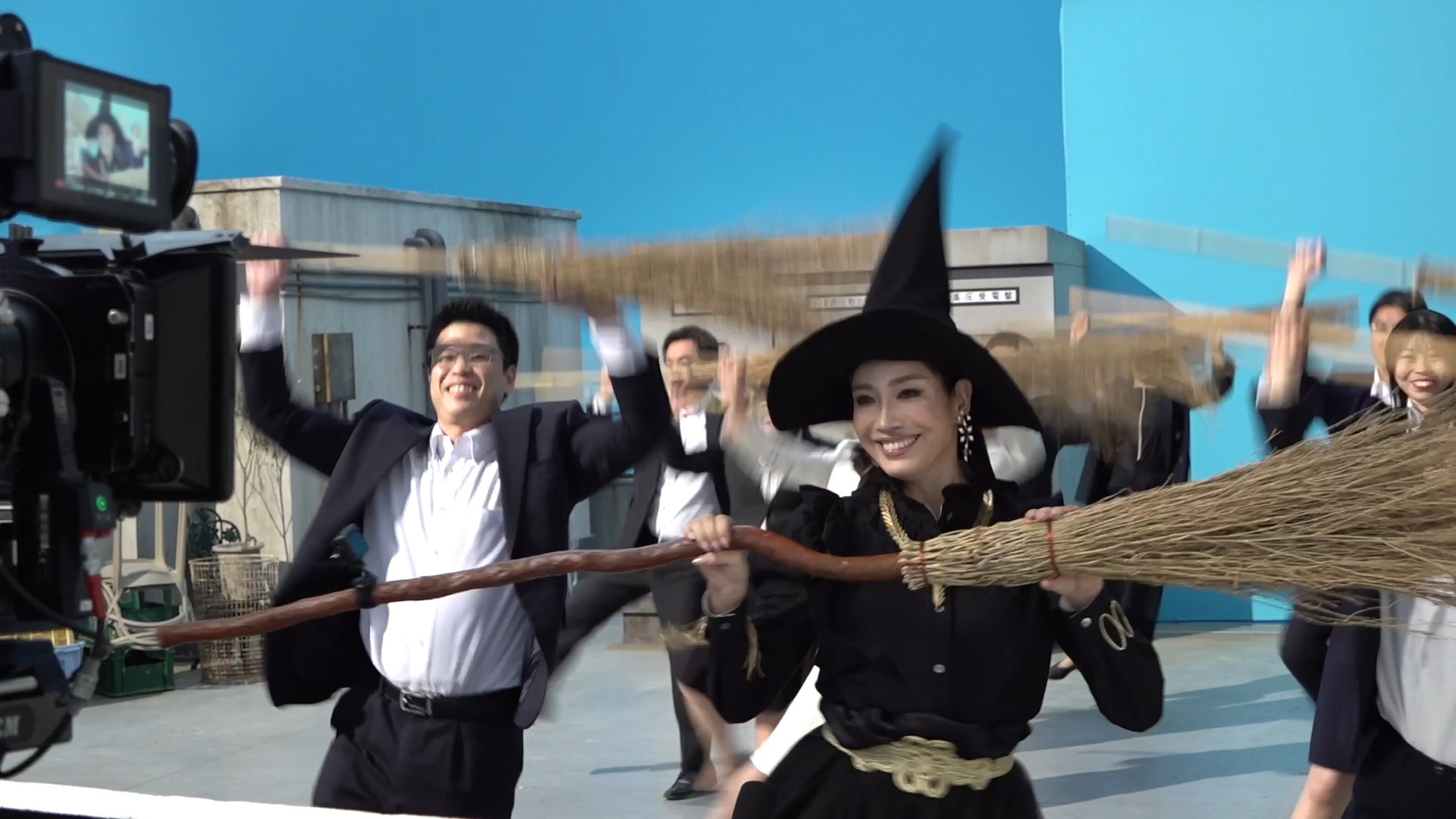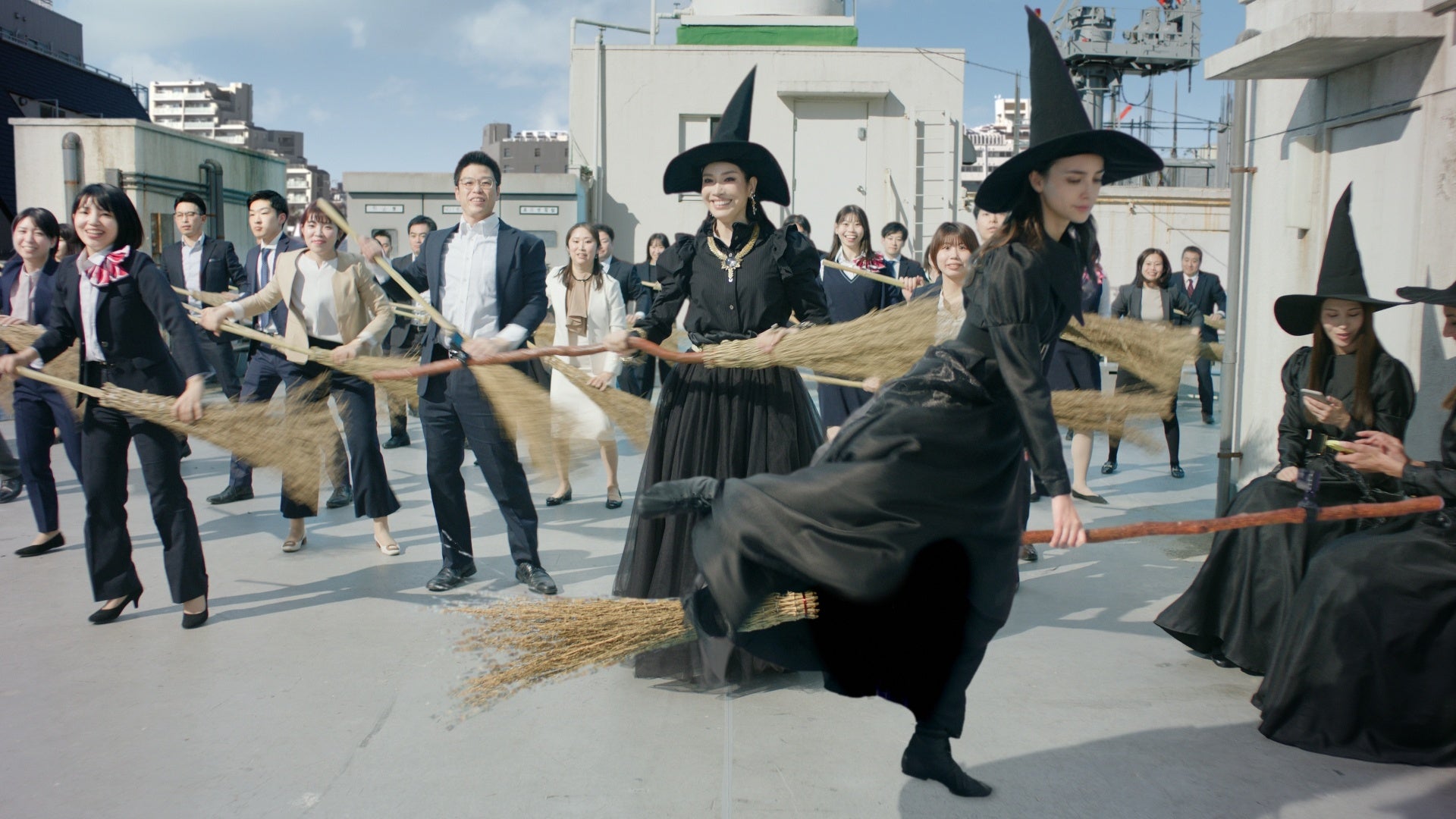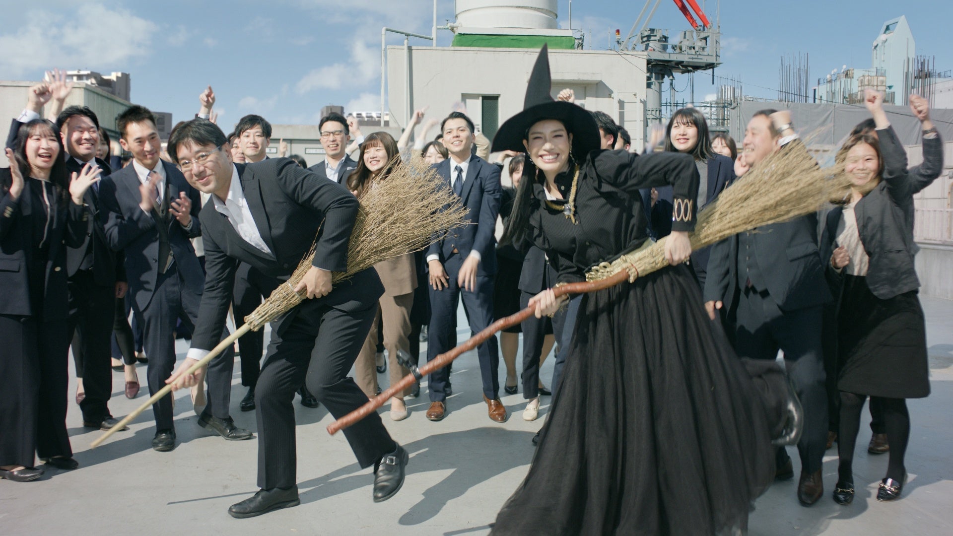 今回初めて、魔女のほうきを持って社員の皆さんとダンスするっていう経験が、大人になってからのお遊戯会じゃないんですけど、すごく楽しかったです!社員の皆さんもイキイキされていて、皆さん元ダンサーかなって思うぐらいお上手でした。なにより振付け師のKENZOさんが皆さんを鼓舞されながら、すごく皆さんのやる気をポジティブに引き出されてるのを見て、めちゃくちゃ楽しい気持ちになりました。たぶん、このCMを見るたびに幸せな気持ちになると思います。楽しかったです、ありがとうございます!