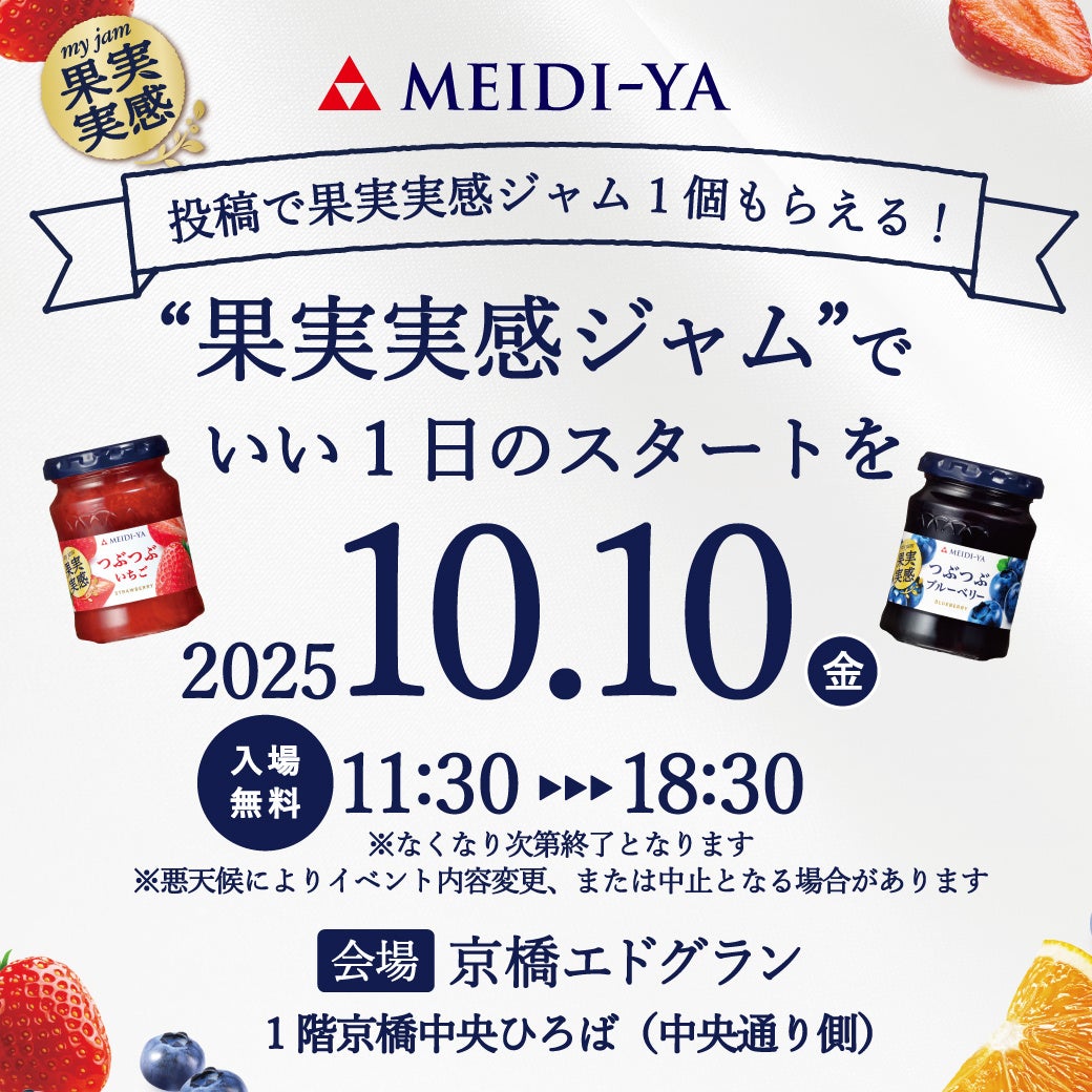 株式会社明治屋は、2025年10月10日(金) に京橋エドグラン1階京橋中央ひろば(中央通り側)にて、先着500名様に「果実実感ジャム」150gを無料で1個配布するイベントを開催いたします。