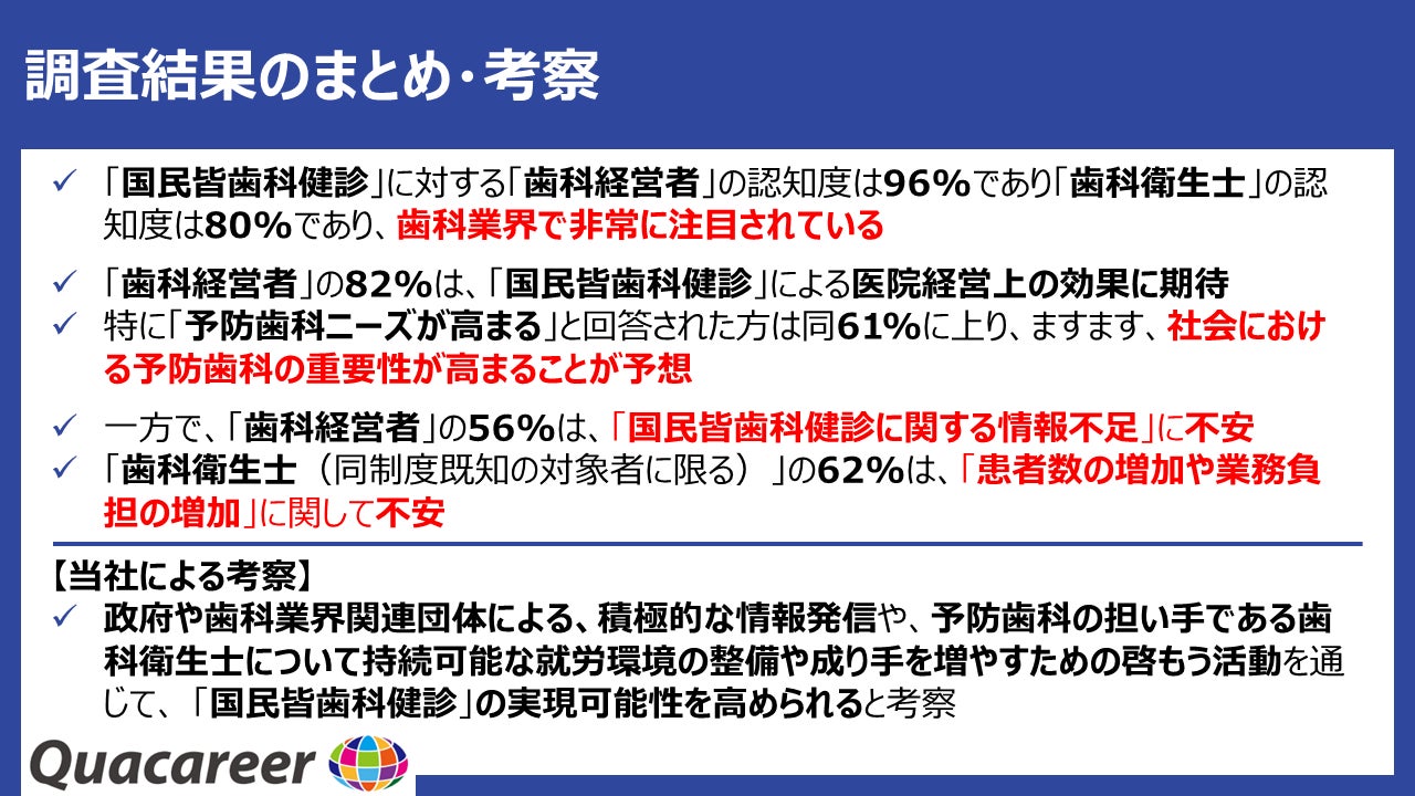 これらの不安を取り除く形で、同制度の検討が進むことで、より充実した形で「国民皆歯科健診」が社会に実装されることが示唆されました。