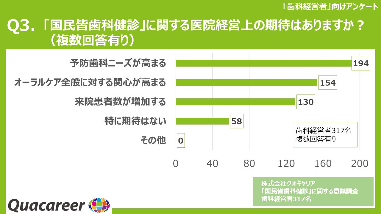 Q3. 「国民皆歯科健診」に関する医院経営上の期待はありますか?(複数回答有り)
