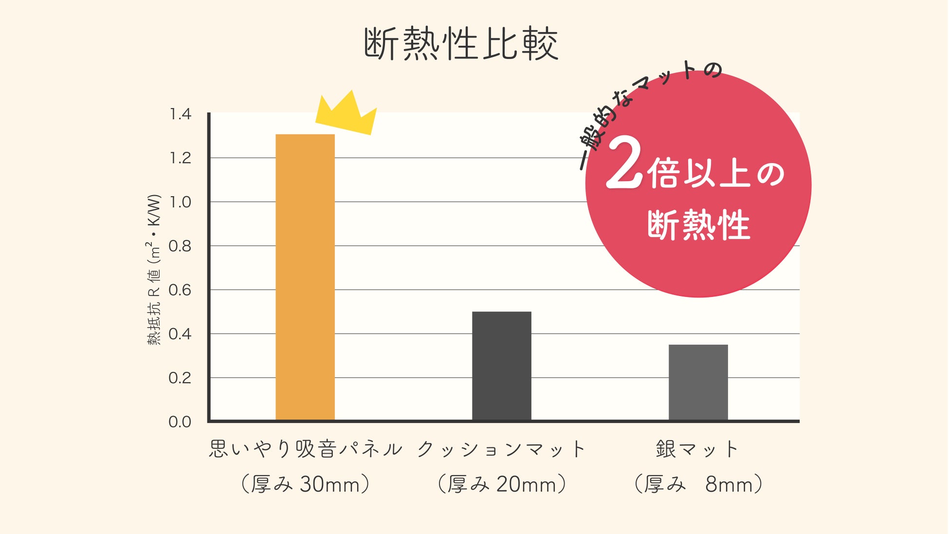 ・厚み30mmのウレタン材を使用、一般的なマットの2倍以上の断熱性