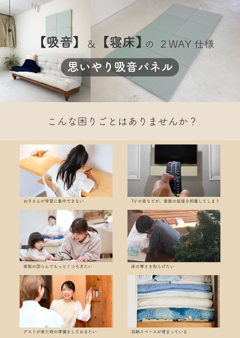吸音/寝床の2WAY仕様!中材にリサイクルウレタンを使用した【思いやり吸音パネル】がMakuakeでクラウドファンディング開始!