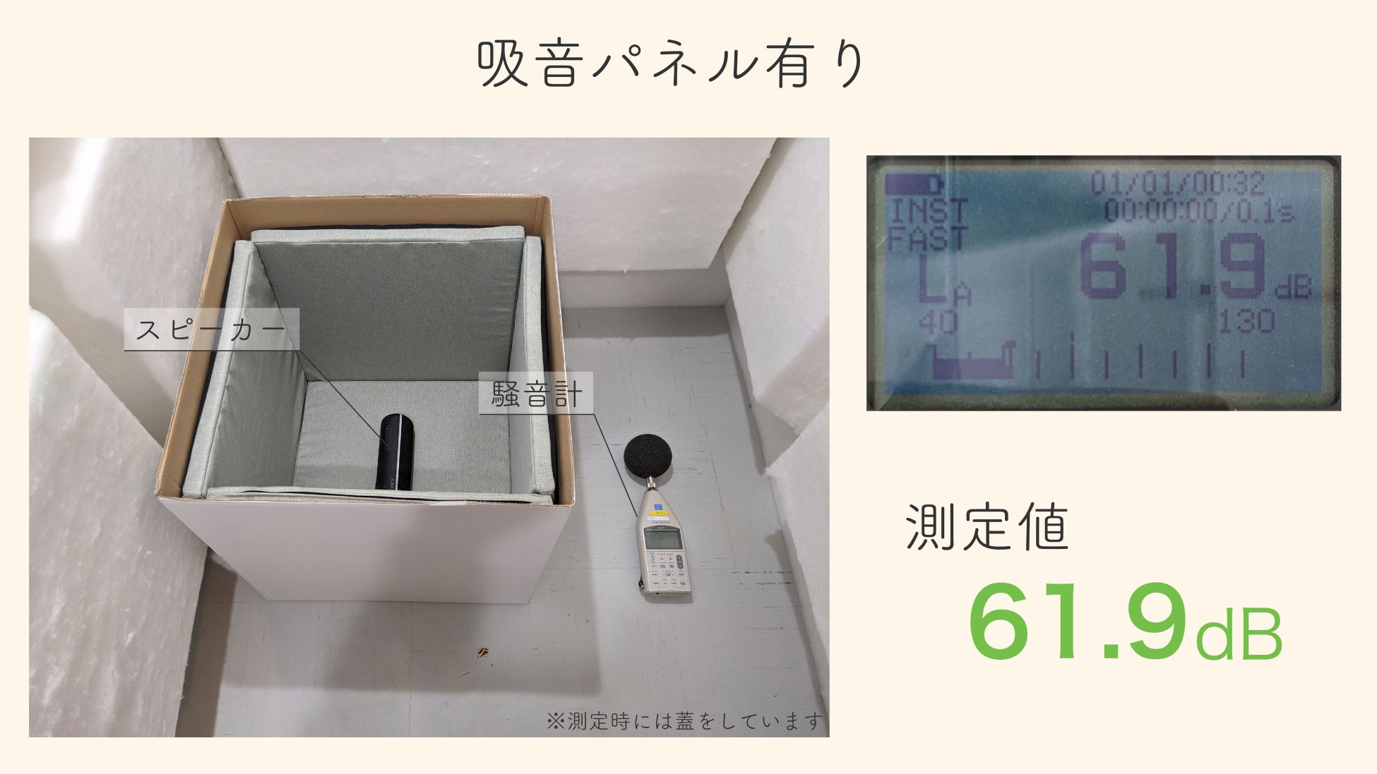 ・部屋に見立てたオリジナル試験では、騒音レベル21.8dBの低減を実現