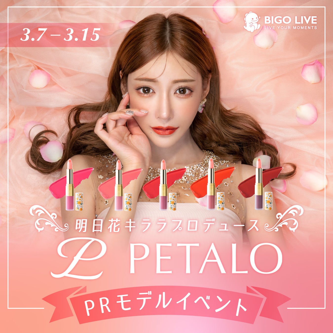 大人気グローバルライブ配信アプリ「BIGO LIVE(ビゴライブ)」を運営するBigo ServiceJapan株式会社(東京都渋谷区、URL:https://bigolive-jp.com/ja/jp/)は、株式会社LADDER(本社:東京都港区、以下 LADDER)から2022年7月にリリースされている明日花キララさん完全プロデュースのコスメブランド「PETALO」(ペタロ)と、コラボイベント『明日花キララプロデュース「PETALO」PRモデルイベント 』(開催日時:2023年3月7日 〜3月15日)を開催します。