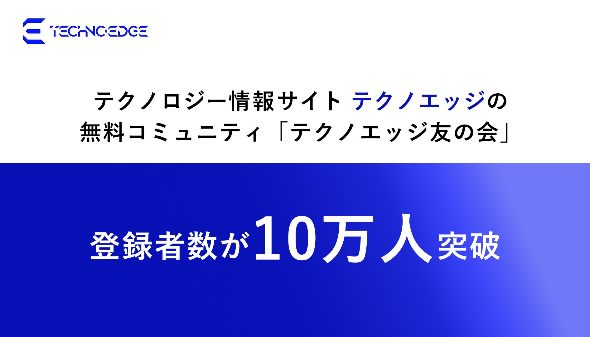 株式会社テクノコア(本社:東京都台東区、代表取締役:鷹木創)が運営するテクノロジー情報サイト「テクノエッジ(TechnoEdge)」の無料会員コミュニティ「テクノエッジ友の会」の会員数が10万人を突破しました。