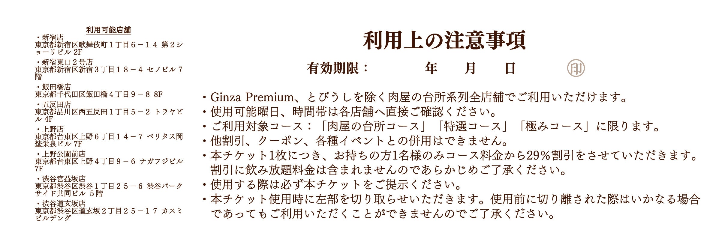 食事券の利用条件や対象コース、店舗情報などの