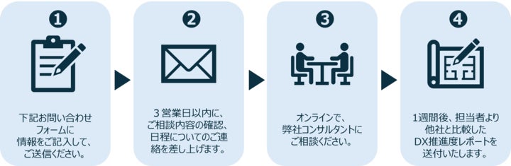 今回開設した無料オンライン相談は、そうしたお悩みに対して、私たちがこれまで培ってきた知見や支援実績をもとに、実務に即したアドバイスを行う場として企画しました。相談いただいた企業には、単なる助言だけでなく「DX推進度レポート」をお返しすることで、現状の立ち位置と次のアクションを具体的に示せるようにしています。