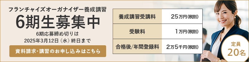 「最短6ヶ月でFC本部をオーガナイズするスキルを身に付ける集中プログラム」「FCオーガナイザー6期養成講習」申込期日まで残り2週間