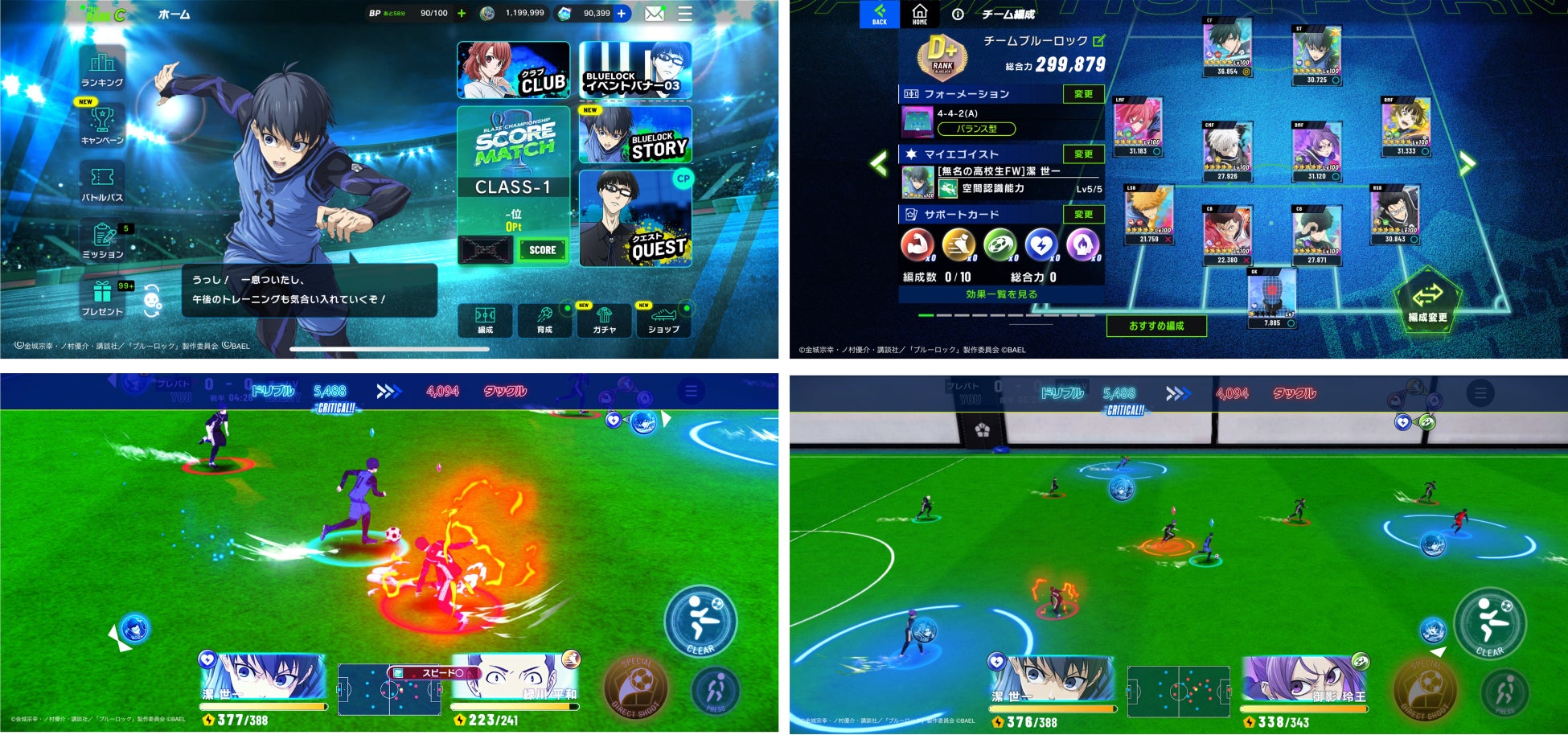 ブレバト内には、ストーリーモードとして、アニメの物語を追体験できる「BLUELOCK STORY」があるため、アニメファンは何度でも、ブルーロックを知らない方でもストーリーをご覧いただきながらゲームが楽しめるようになっています。