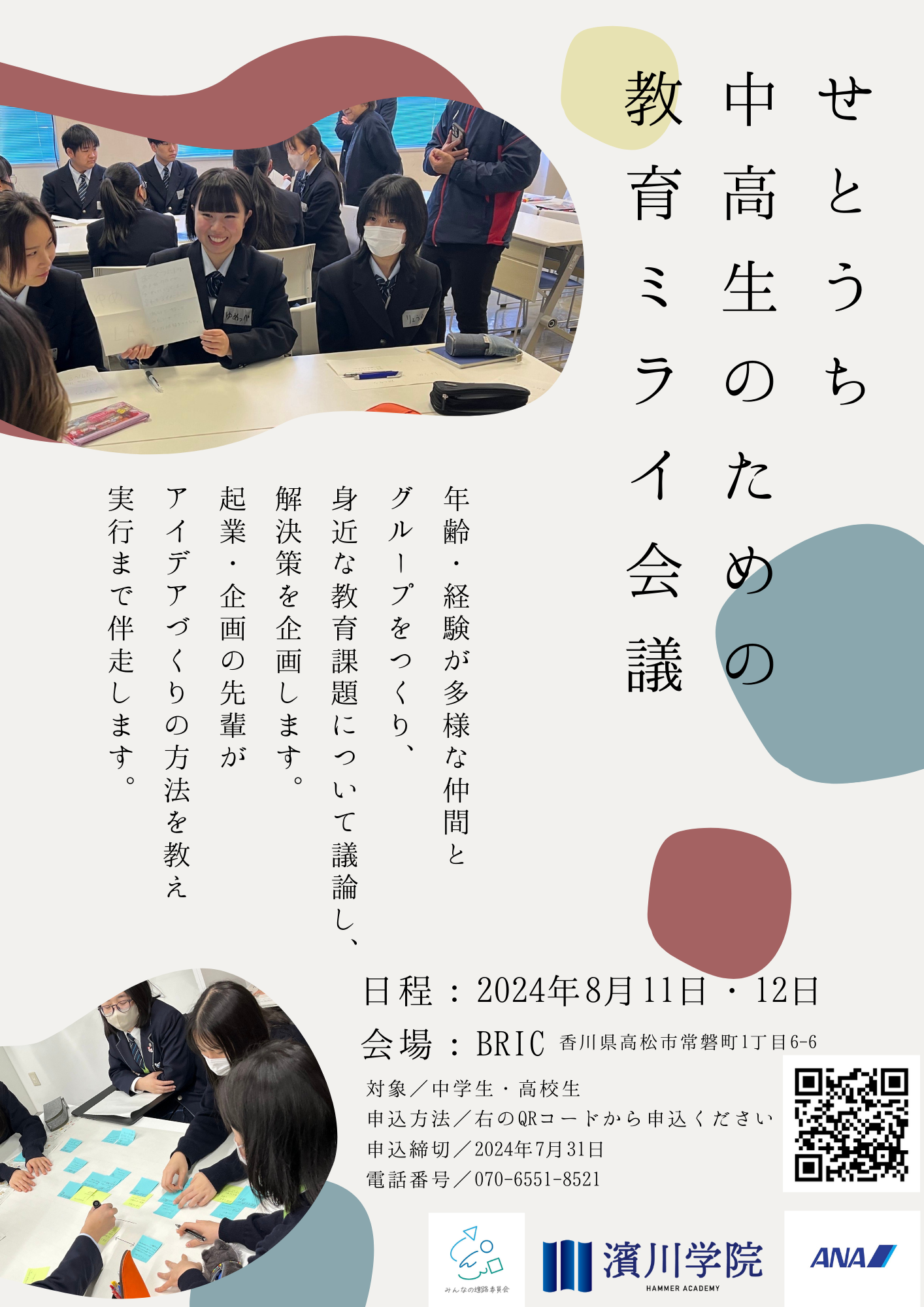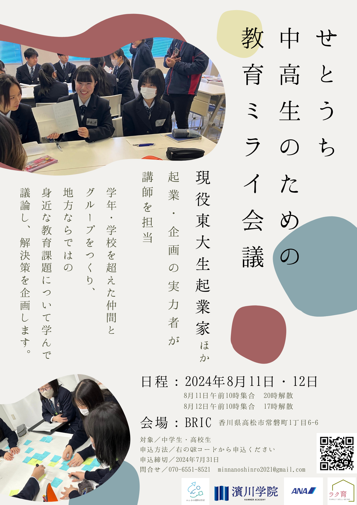 身近な教育の課題について共有したい!知識を深めたい!アイデアを考えたい!友達を作りたい!中学生・高校生大歓迎!申込締切は2024年7月31日!