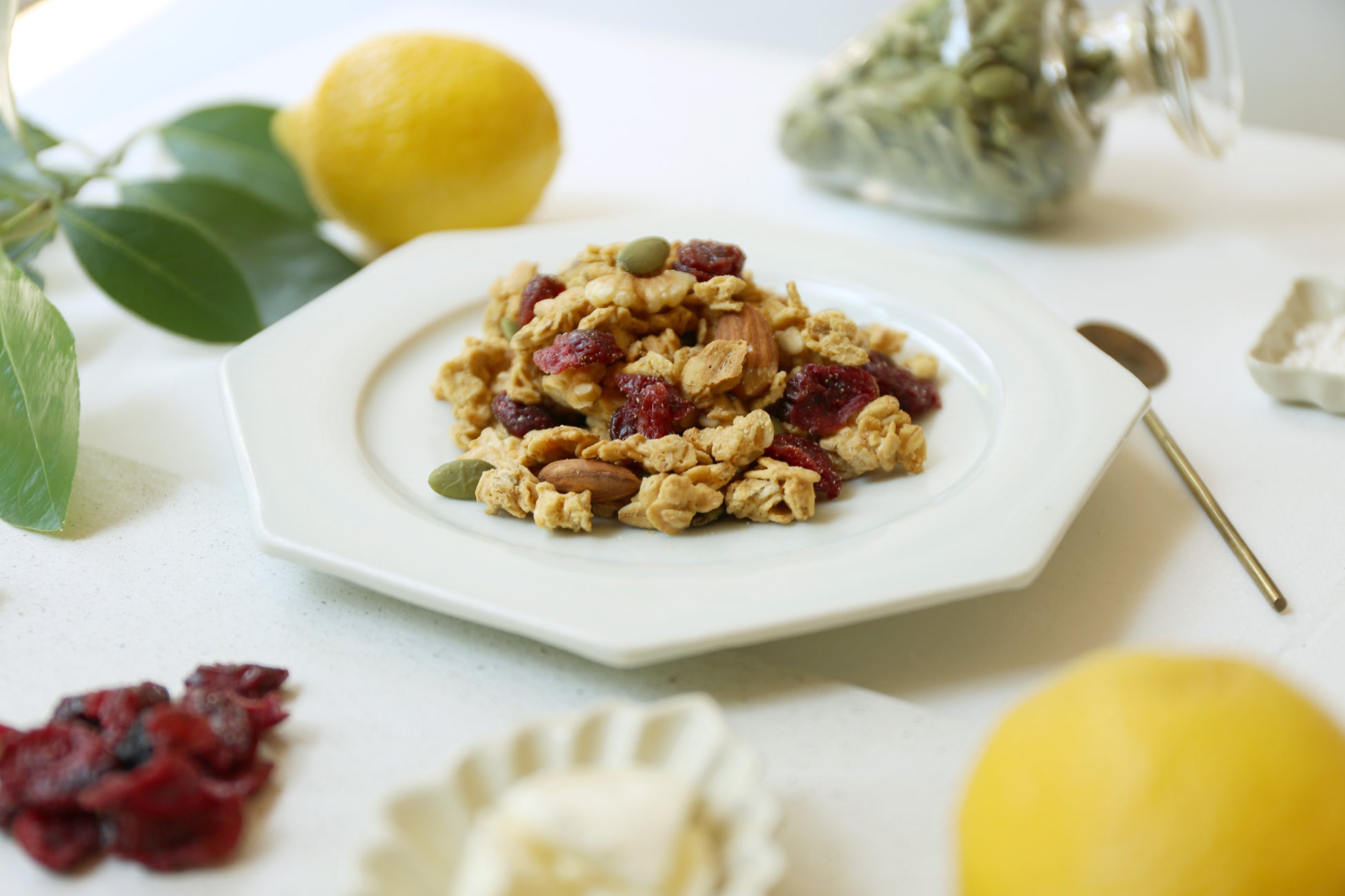 まろやかなチーズケーキ風味と、有機クランベリーの自然な甘酸っぱさと有機レモン果汁の爽やかな風味がアクセントになり、飽きのこないおいしさ。一口ごとに満足感を得られるプレミアムなグラノーラです。