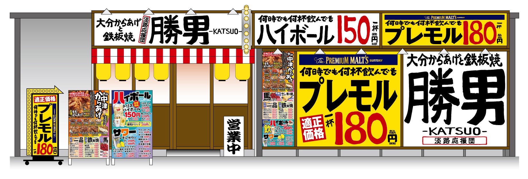 昨今、勝男の看板である「プレモル一杯180円」を模倣する形で、生ビールを一杯「180円」「190円」等を看板メニューにする居酒屋が増えております。ただ業態開発からの信念がなく、勝男の模倣をしているだけだと思われますが、勝男は14年前の⼀号店のオープン時から生ビール一杯「180円」という看板を掲げており、第一人者を自負しております。ただお客様目線という勝男の信念に共感されての事だと認識しております。