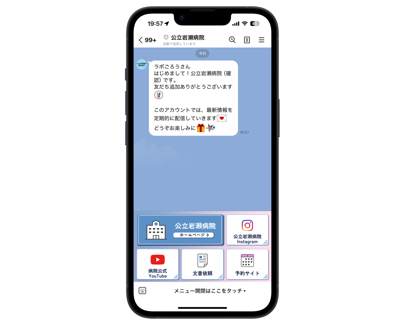 1. LINEで「公立岩瀬病院」を友だち追加