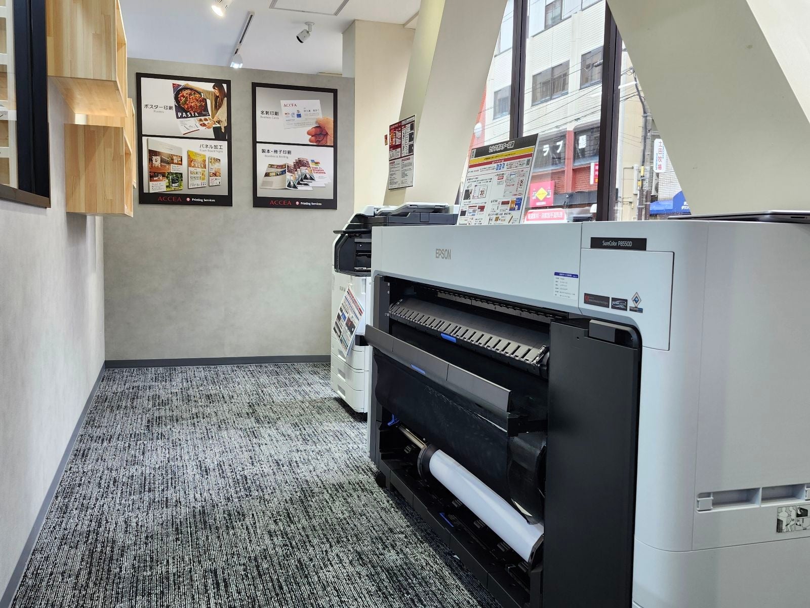新店舗は、盛岡駅に直結する商業施設「盛岡駅ビル フェザン」の本館1階フェザンテラス内という利便性の高い立地に出店。アクセアが得意とする各種印刷サービスに加え、コワーキングスペースを併設するほか、お客様ご自身で操作できるセルフ大判プリンターや、看板などの作成が可能な屋外用印刷機も導入し、地域のビジネスパーソン、クリエイター、学生など、多様なお客様のニーズに幅広くお応えします。