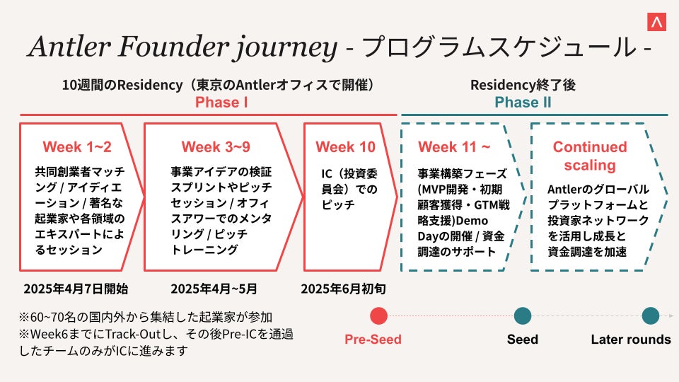 2025年4月7日からResidencyはスタート。10週目に開催されるIC(投資委員会)を通過し出資を受けたチームはPhaseIIに入り、その後も継続的なサポートを受けます。