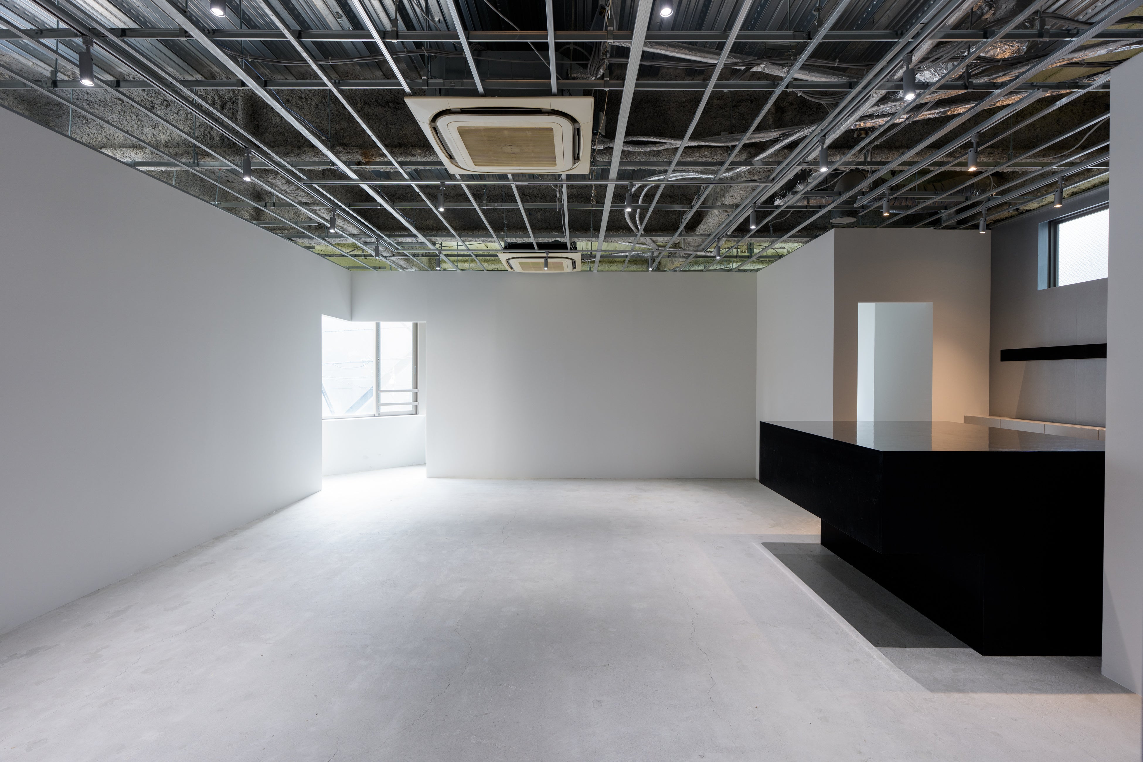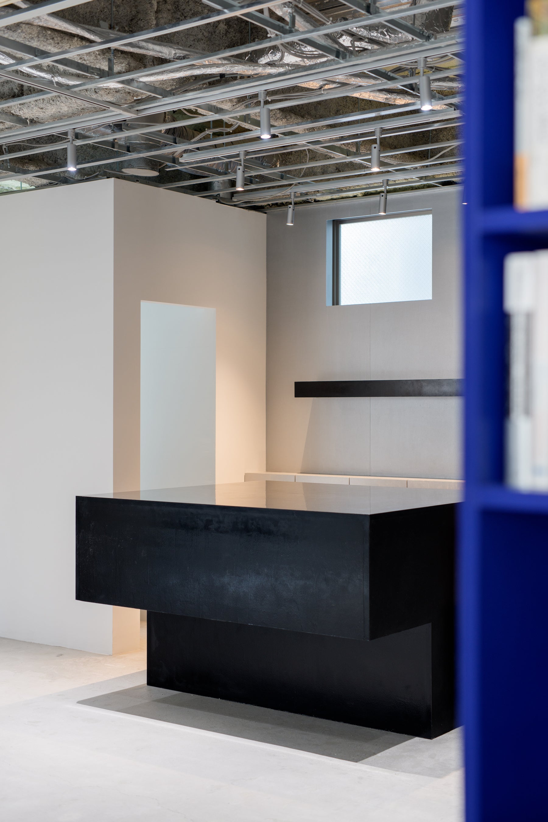 空白の奥には謎めいた黒い塊が鎮座しています。それはカウンターにしては大きく、形もあいまいで、使い方を見出されるのを待っています。この物体は、あらかじめ定義づけられたものに従うのではなく、人々がみずから意味を見出していくこの場所を象徴しています。(ULTRA STUDIO共同主宰・向山裕二)