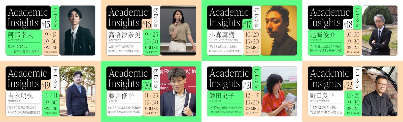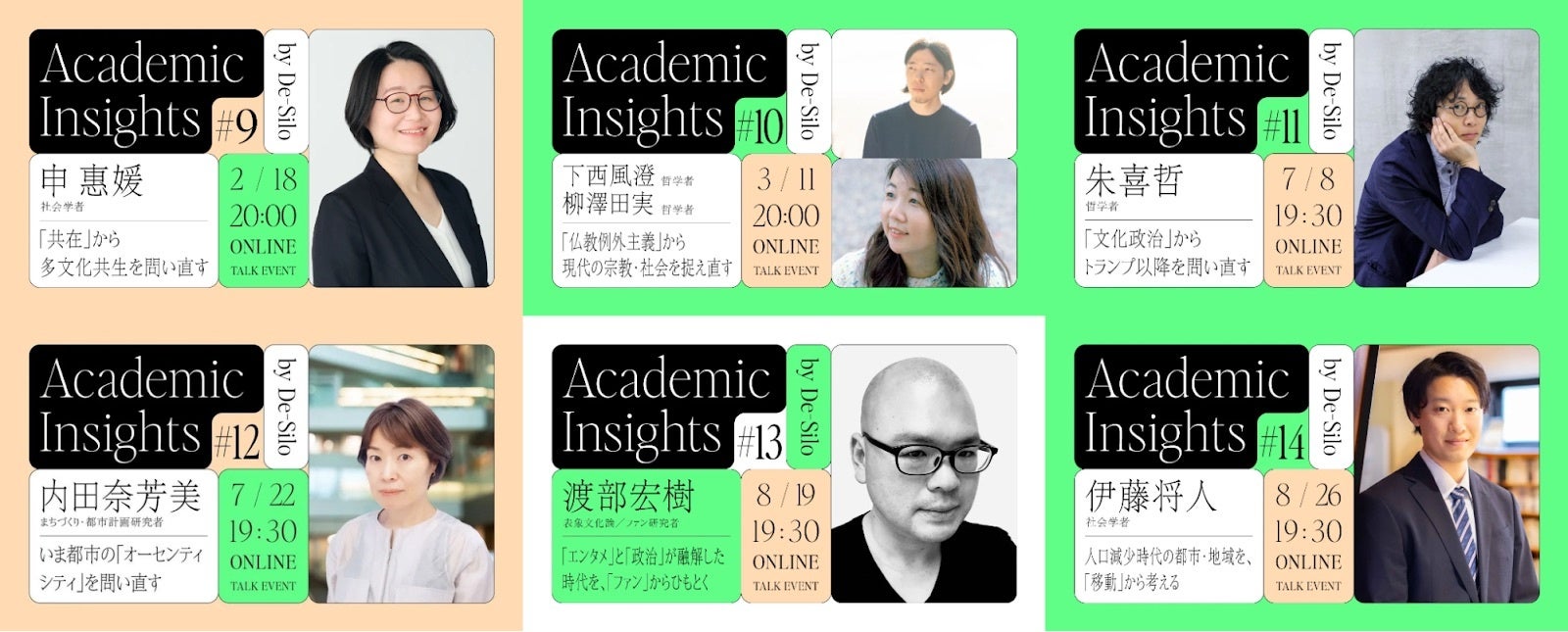 デサイロでは、人文・社会科学分野の学知を起点に、次なる社会や人間のあり方を探索する「Academic Insights」というイベントシリーズをオンライン開催で実施してきました。今後は、本拠点でのフィジカル/オンラインを併用し、開催していきます。