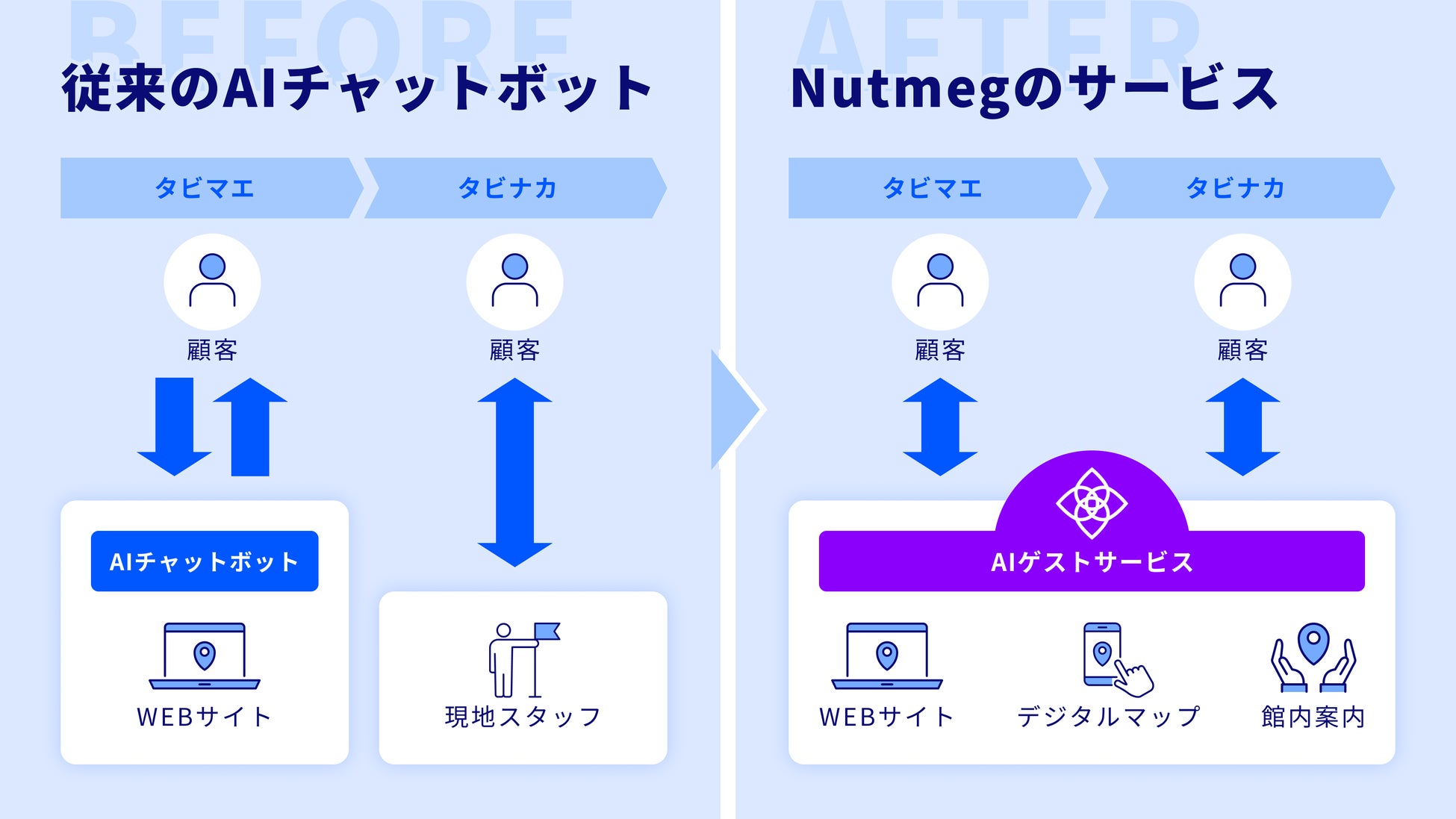 同時に、タビナカのDXを推進するAIプロダクトを「Nutmeg AI」として発表し、今後も様々なAIプロダクトを開発・提供していきます。