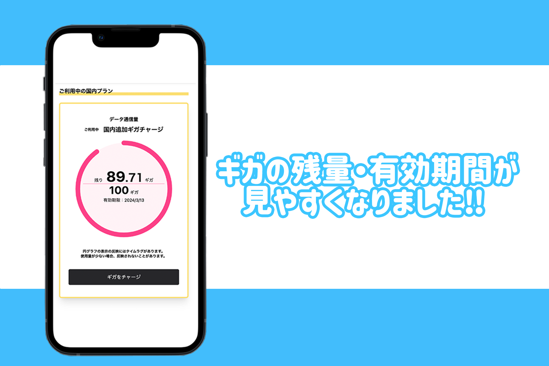 マイページよりギガの残量・有効期間の確認ができるようになり