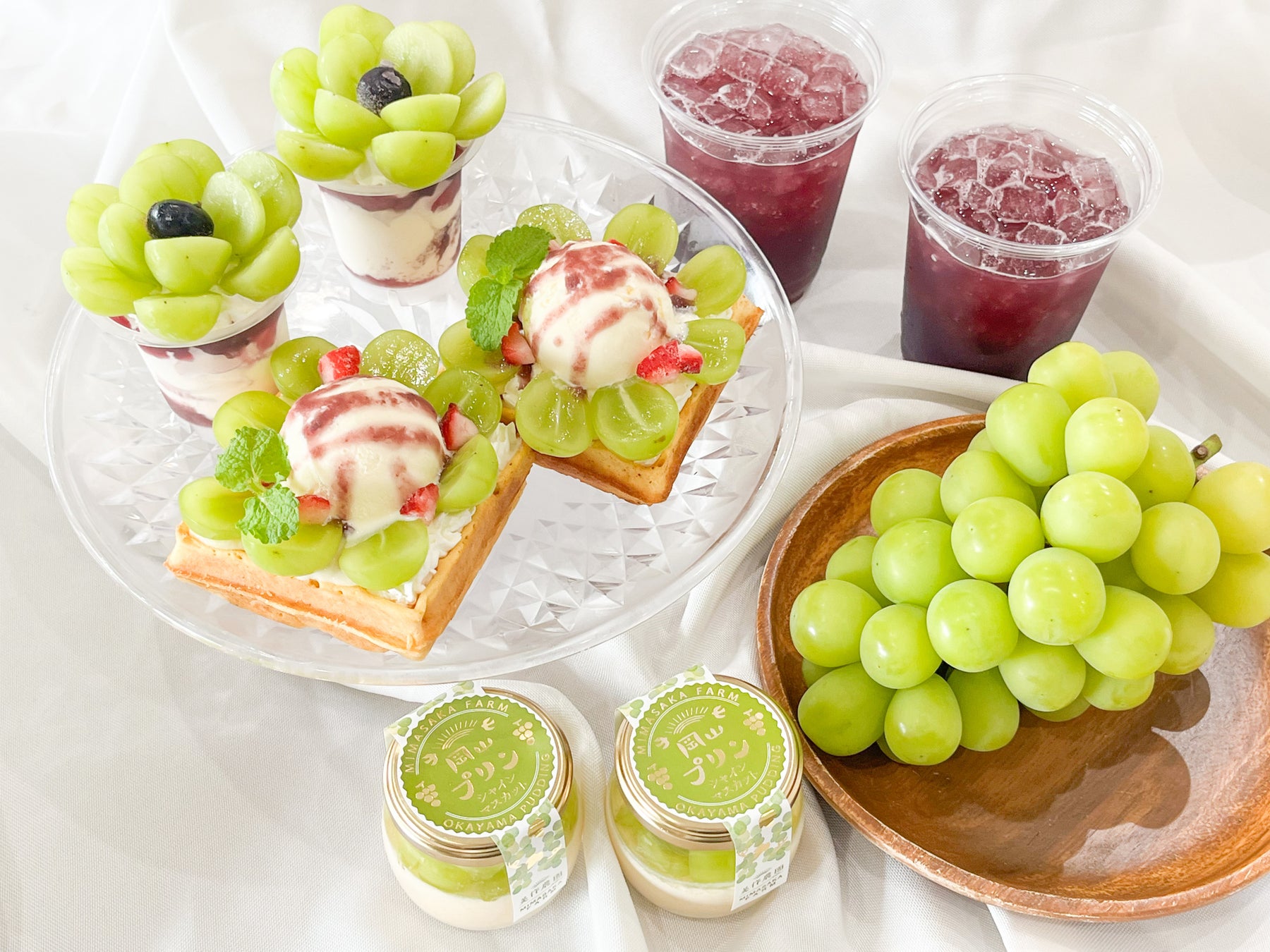 フルーツ王国岡山の朝採りシャインマスカットを堪能!1日20食限定「シャインマスカットアフタヌーンティーセット」農園カフェ湯郷で新登場