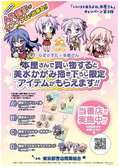 「らき☆すた」×「本屋さん」コラボ企画開始! 都内の対象書店でお買い物をすると、AR撮影ができる美水かがみ先生描き下ろしの限定特典プレゼント!