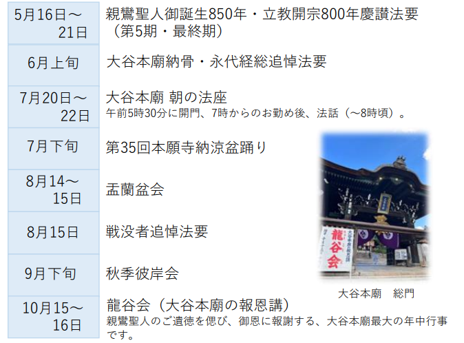 本願寺の今後の予定(上半期)