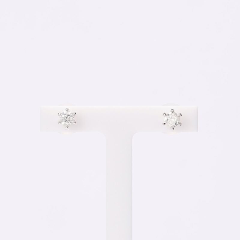 K18ホワイトゴールドのダイヤモンドピアス。合計0.2ct Upのダイヤモンドが耳元で上品に輝きます。